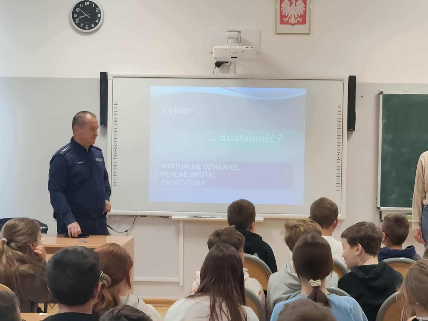 We czwartek 02 października w Międzynarodowy Dzień bez Przemocy zostało zorganizowane spotkanie edukacyjne z policjantem Komisariatu Policji w Uściu Gorlickim – Panem Waldemarem Pierzgą. Podczas spotkania gość poruszył tematykę cyberprzemocy rówieśniczej oraz konsekwencji podejmowania niepożądanych działań w przestrzeni internetowej. Spotkanie miało na celu podniesienie świadomości na temat przemocy wśród dzieci i młodzieży oraz promowanie pozytywnych postaw szacunku, empatii i wzajemnej tolerancji.