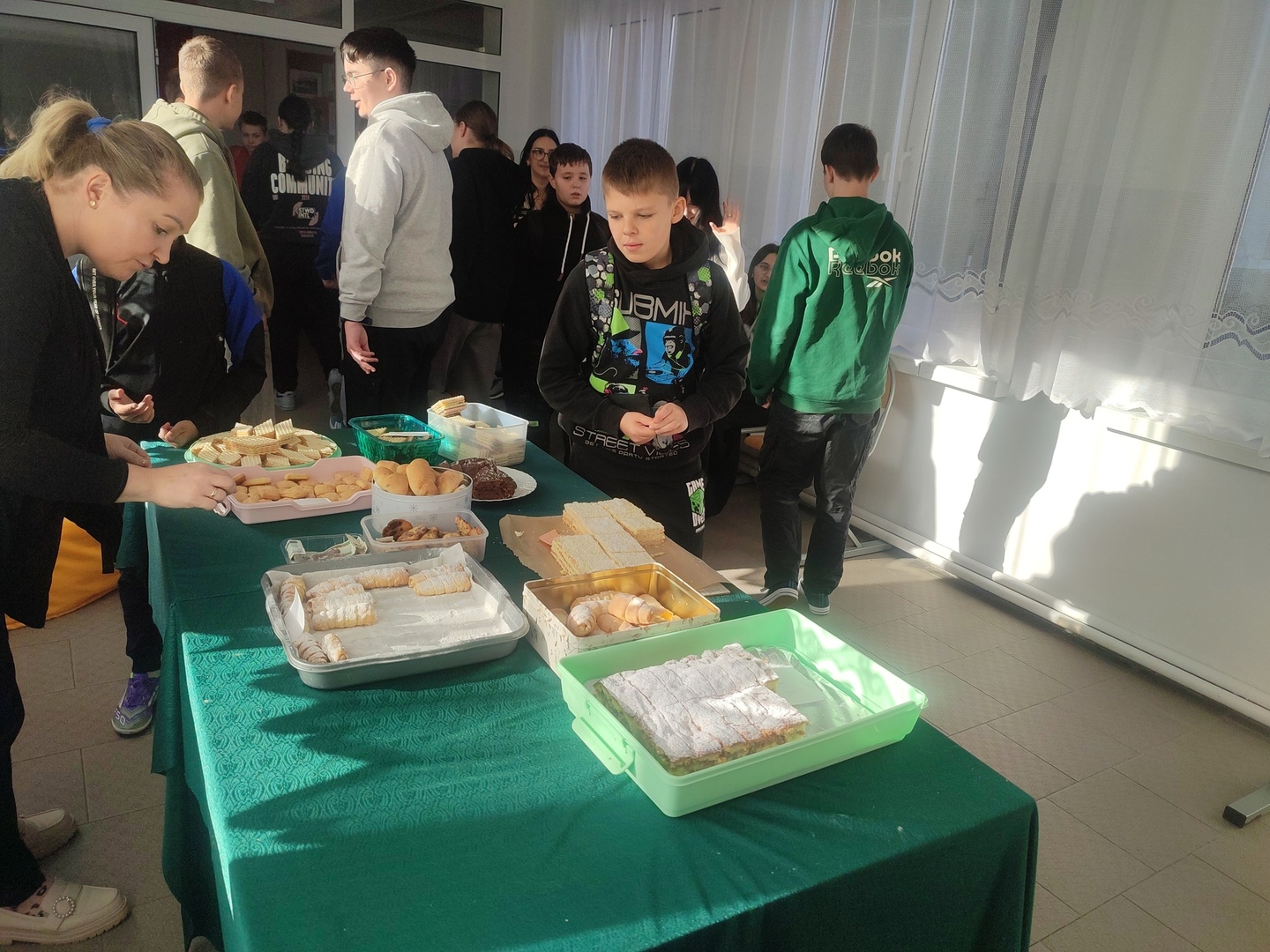 W listopadzie odbył się w naszej szkole kiermasz słodkich wypieków zorganizowany przez Szkolne Koło Wolontariatu. Dzięki ogromnemu zaangażowaniu uczniów i nauczycieli, a przede wszystkim dzięki włączeniu się rodziców w przygotowanie wypieków, udało się zebrać 2100 zł. Cały dochód przekazano rodzinie Bolechów ze Zdyni, która ucierpiała w wyniku pożaru domu.