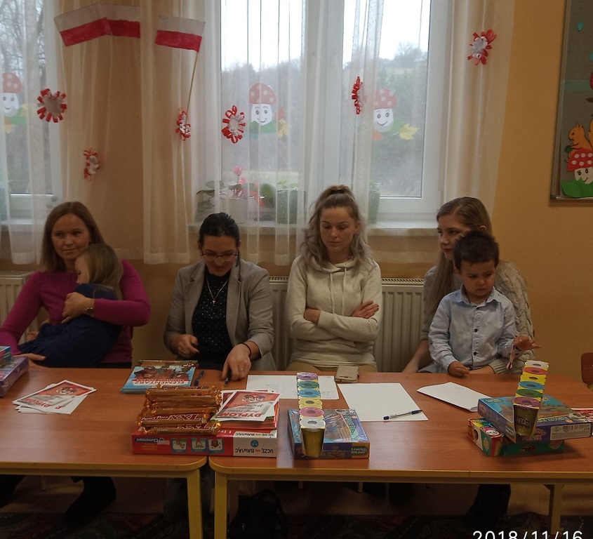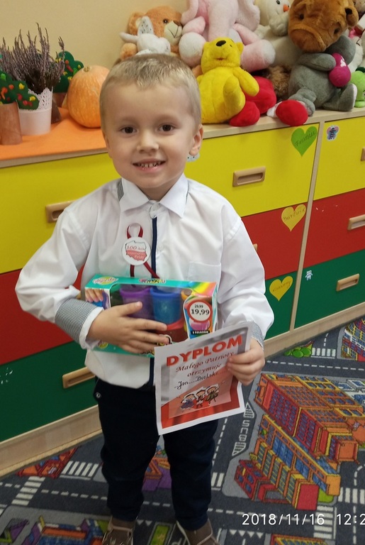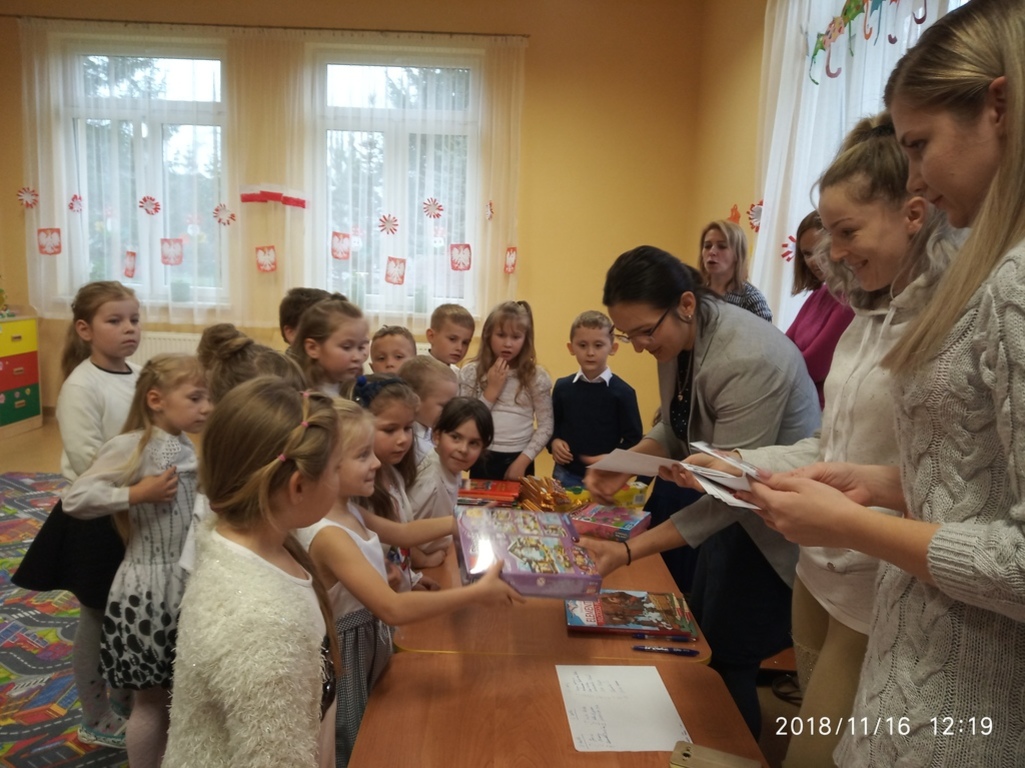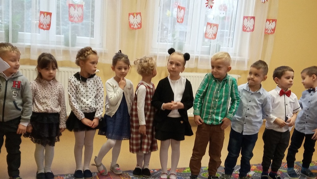 16 listopada 2018 r. w Przedszkolu odbył sie konkurs recytatorski z okazji 100 lecia Odzyskania Niepodległości. W konkursie wzięły udział dzieci w trzech kategoriach wiekowych: dzieci 3-4 letnie, 5 letnie i 6 letnie.Wykonawców oceniało jury w składzie P. Krystyna Michalak - dyrektor, P. Joanna Tacyn,P. Marta Peregrym i P. Sylwia Pach przedstawiciele Rady Rodzicow. Jury miało bardzo trudne zadanie, gdyż dzieci bardzo się starały i pięknie recytowały przygotowane wiersze.