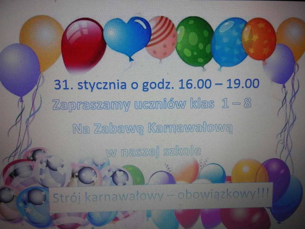 ZABAWA KARNAWAŁOWA !!! ZAPRASZAMY