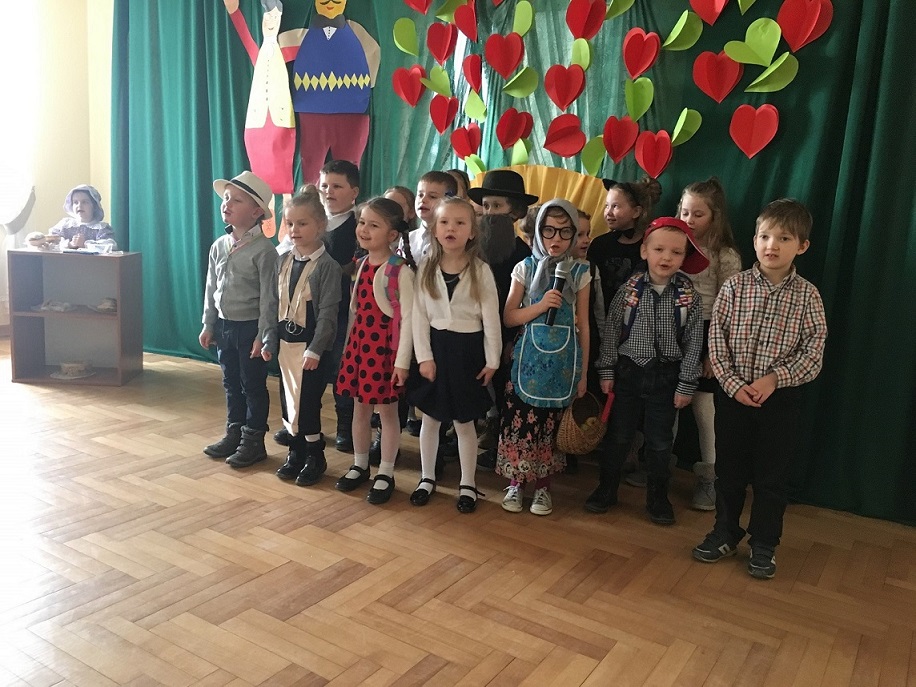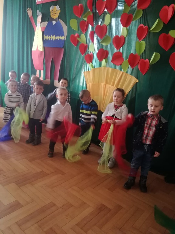Następnie dzieic wręczyły swoim ukochanym babciom i dziadkom przygotowane upominki i laurki z pięknymi życzeniami. Po skończonej części artystycznej goście zostali zaproszeni na słodki poczęstunek.