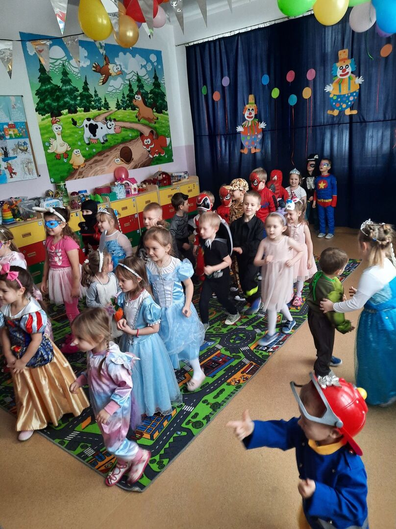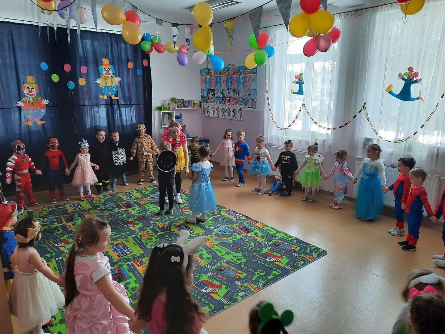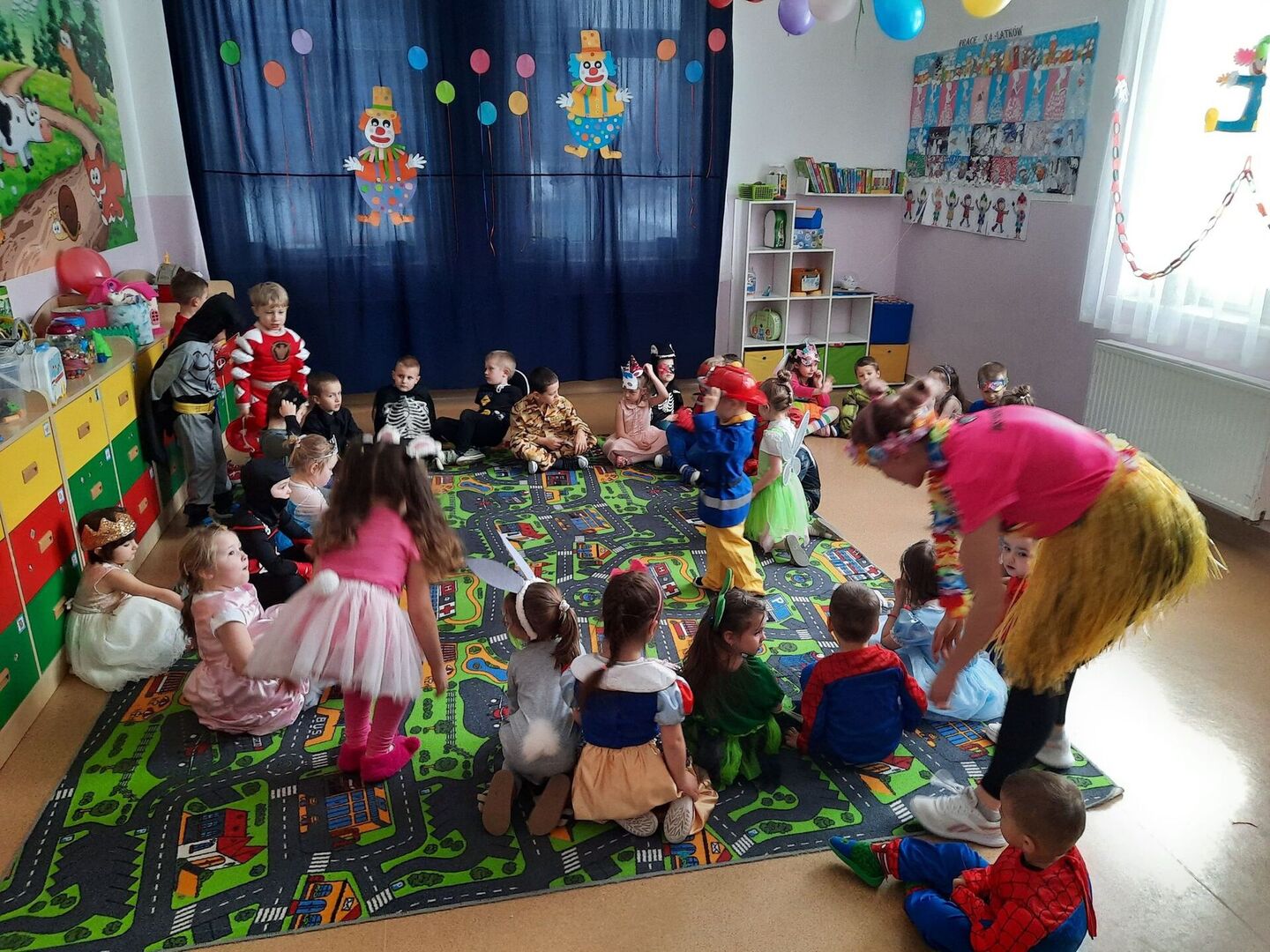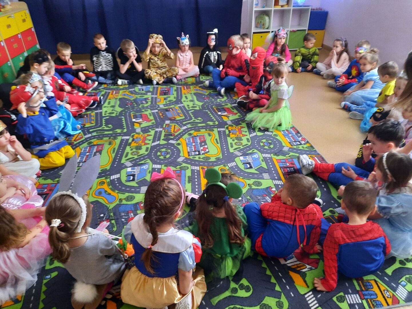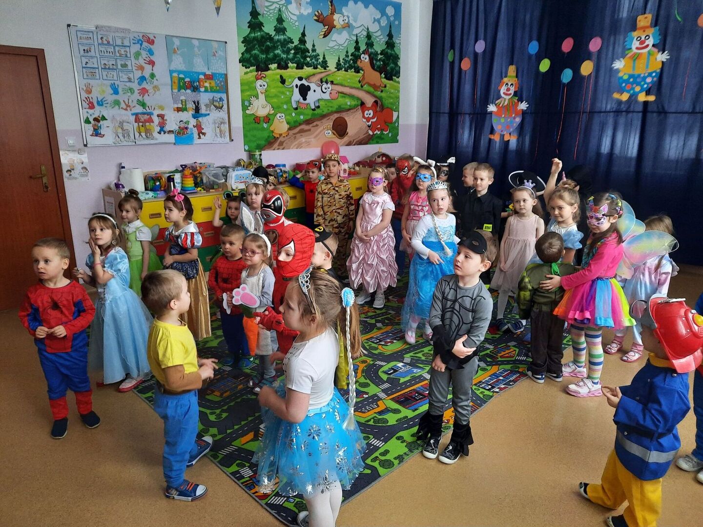 Tego dnia już od rana w przedszkolu pojawiały się kolorowe postacie. Dzieci przebrane były za bohaterów znanych bajek, w salach przedszkolnych można było spotkać wróżki, królewny, księżniczki, motylki, rycerzy, piratów, policjantów, Spider-Mana, Batmany i wiele innych. Wcześniej przygotowany wystrój sali wprowadził w radosny nastrój oraz zachęcał wszystkich do wesołej zabawy.