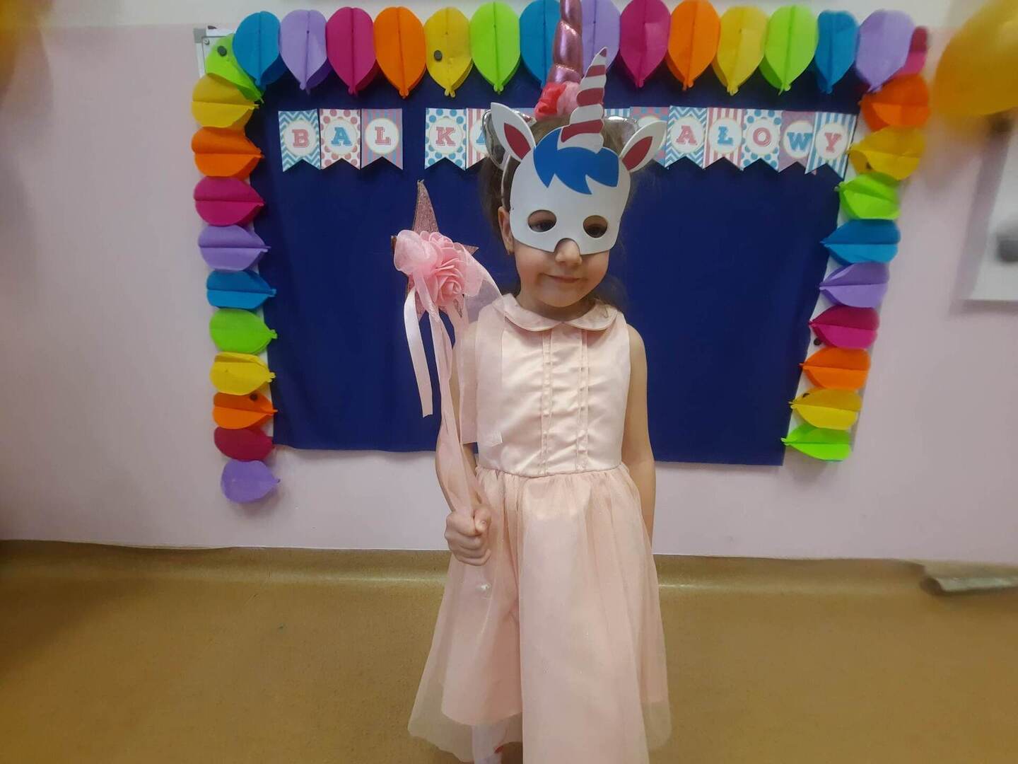Na tą wyjątkową okazję zaprosiliśmy do prowadzenia balu Panią animator, która zachęcała dzieci do tańca z przygotowaną muzyką, zabawami, kolorowymi rekwizytami takimi jak: balony, kapelusze, bukiety kwiatów, piłki, hula-hop i wiele innych. Przedszkolaki świetnie się bawiły. Widać było uśmiechy na twarzy, mimo chwilowego zmęczenia. Podczas balu zaplanowano także odpoczynek, w którym dzieci mogły udać się na mały poczęstunek. Wspólna zabawa przyniosła wiele radości naszym przedszkolakom.