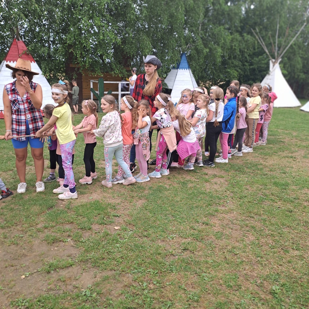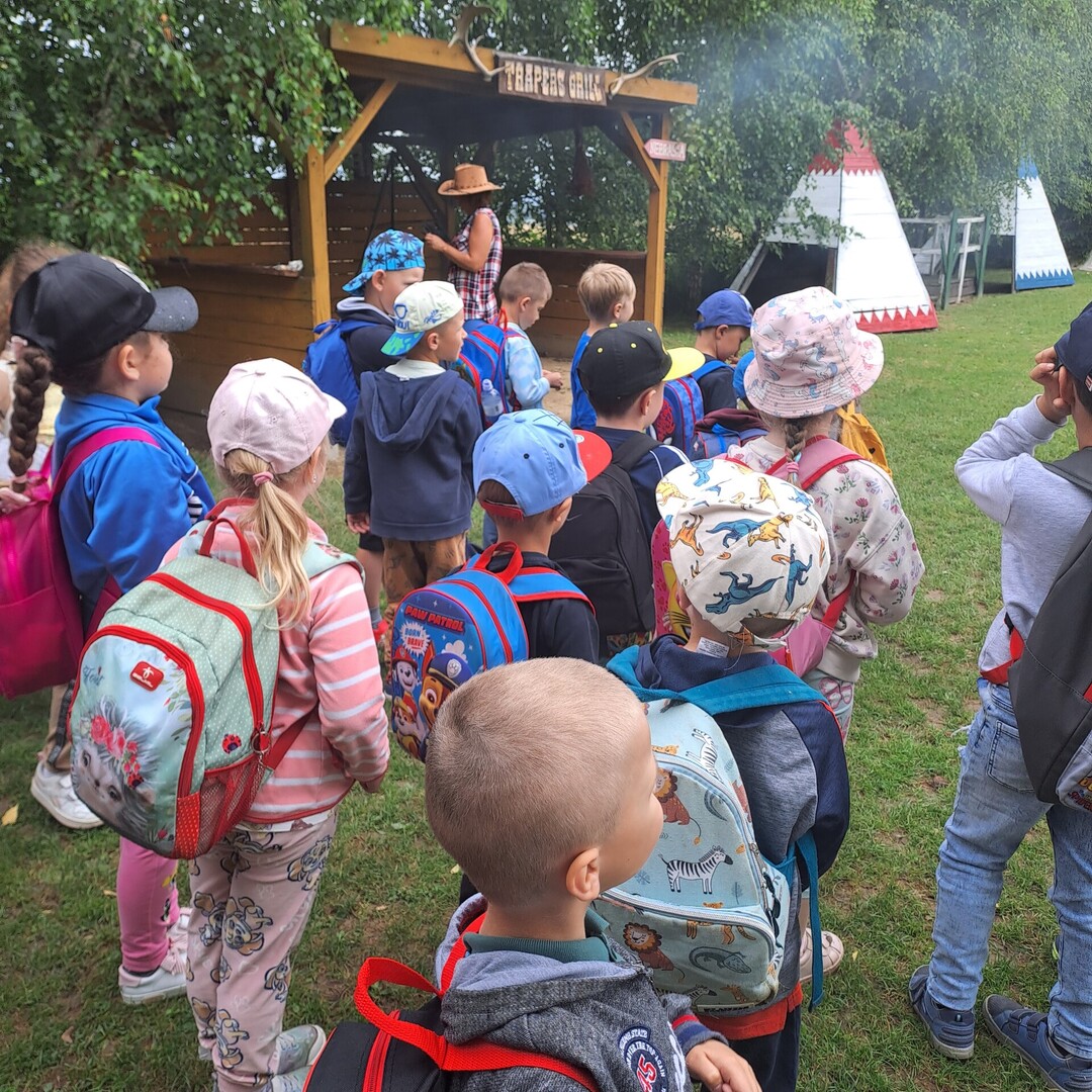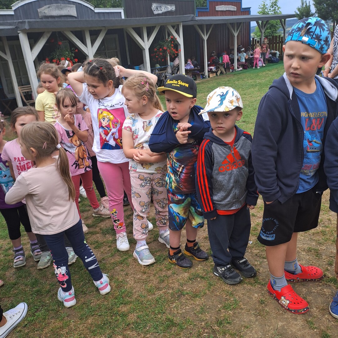 Przedszkolaki dnia 10.06.2024r. wybrały się na wycieczkę do Wioski Indiańskiej "Hokka Hey" w Kunowej oraz Muzeum Lizaka w Jaśle. Podczas wycieczki uśmiech z twarzy Naszych przedszkolaków nie znikał. W Wiosce Indiańskiej czekało na dzieci mnóstwo atrakcji: dmuchańce, mini zoo, zabawy i tańce z wodzem Indiańskim, przejażdżka na kucyku, samodzielne wykonanie swojej opaki Indiańskiej oraz malowanie na twarzy przez kowbojki wzorków indiańskich. Nie zabrakło także kiełbaski z grilla. Po udanym pobycie w wiosce "Hokka Hey" wyruszyliśmy w dalszą podróż do Muzeum Lizaka, gdzie poznaliśmy jego historię. Mieliśmy możliwość powąchania aromatów, które dodawane są do lizaków,a także zobaczyliśmy jak powstaje taki lizak. Na koniec pobytu każdy przedszkolak wykonał swojego własnego lizaka, którego zabrał do domu. To był dzień niesamowitych przygód i wspanaiłych atrakcji dla wszystkich przedszkolaków.