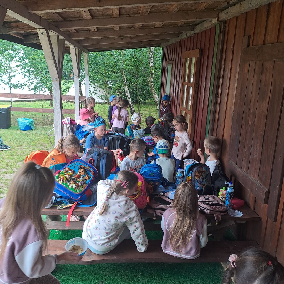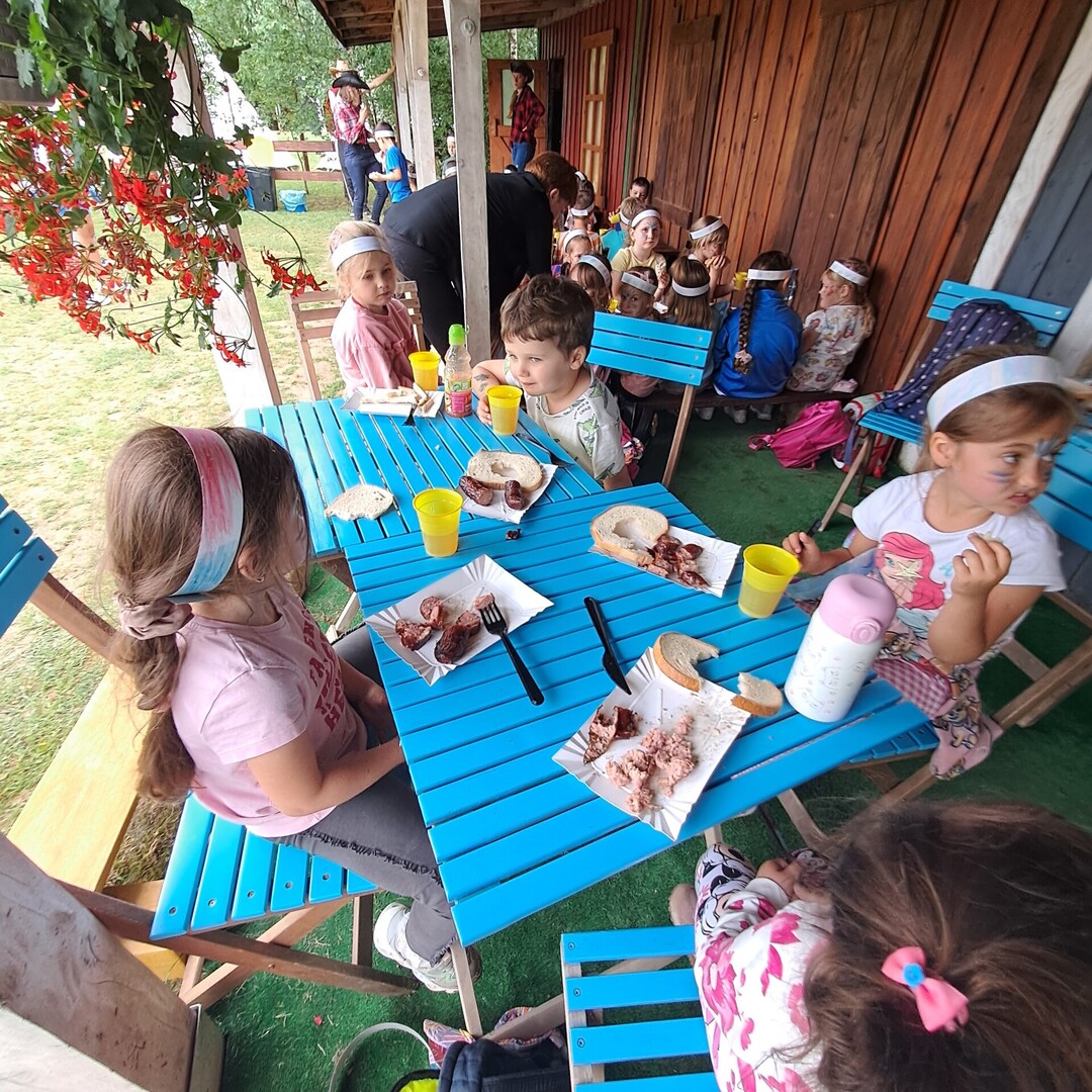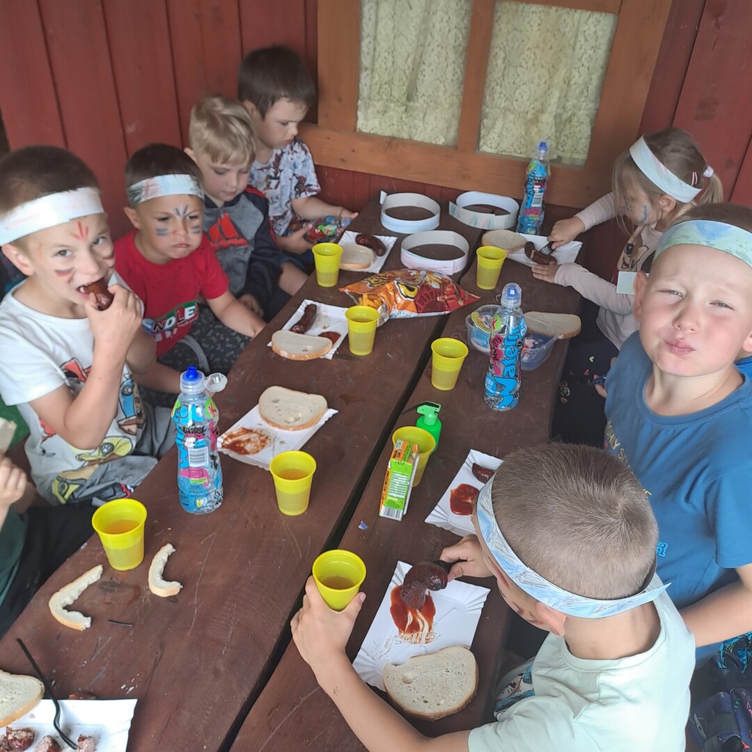 Przedszkolaki dnia 10.06.2024r. wybrały się na wycieczkę do Wioski Indiańskiej "Hokka Hey" w Kunowej oraz Muzeum Lizaka w Jaśle. Podczas wycieczki uśmiech z twarzy Naszych przedszkolaków nie znikał. W Wiosce Indiańskiej czekało na dzieci mnóstwo atrakcji: dmuchańce, mini zoo, zabawy i tańce z wodzem Indiańskim, przejażdżka na kucyku, samodzielne wykonanie swojej opaki Indiańskiej oraz malowanie na twarzy przez kowbojki wzorków indiańskich. Nie zabrakło także kiełbaski z grilla. Po udanym pobycie w wiosce "Hokka Hey" wyruszyliśmy w dalszą podróż do Muzeum Lizaka, gdzie poznaliśmy jego historię. Mieliśmy możliwość powąchania aromatów, które dodawane są do lizaków,a także zobaczyliśmy jak powstaje taki lizak. Na koniec pobytu każdy przedszkolak wykonał swojego własnego lizaka, którego zabrał do domu. To był dzień niesamowitych przygód i wspanaiłych atrakcji dla wszystkich przedszkolaków.