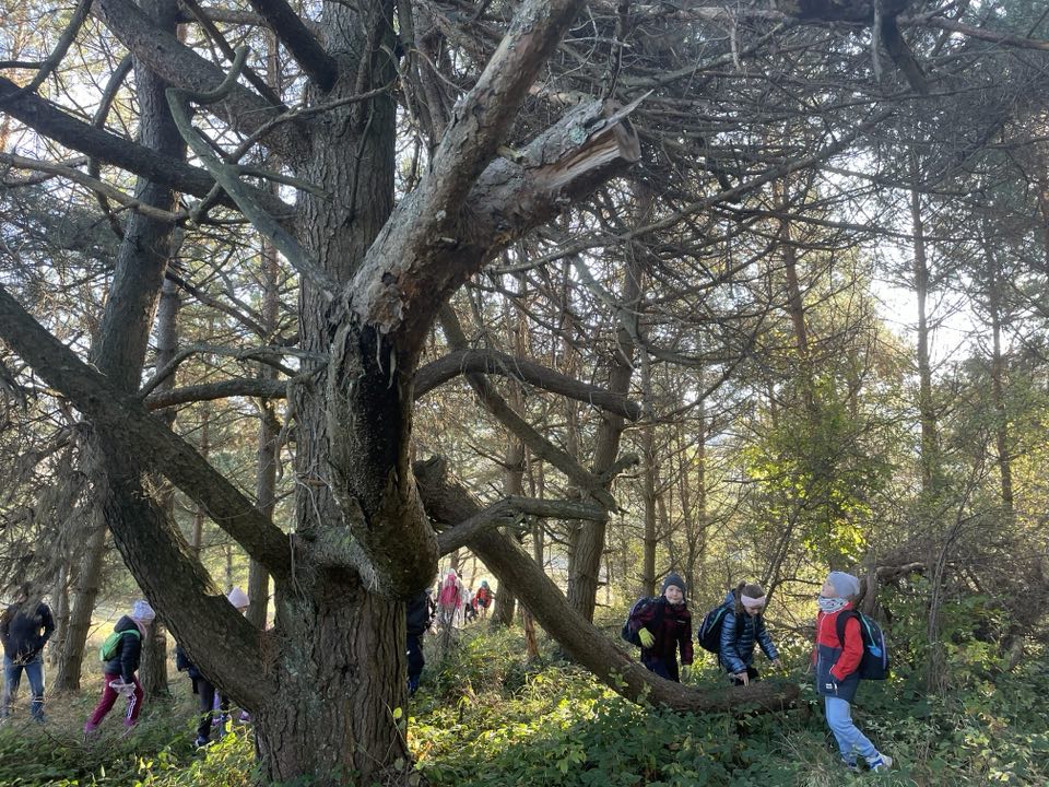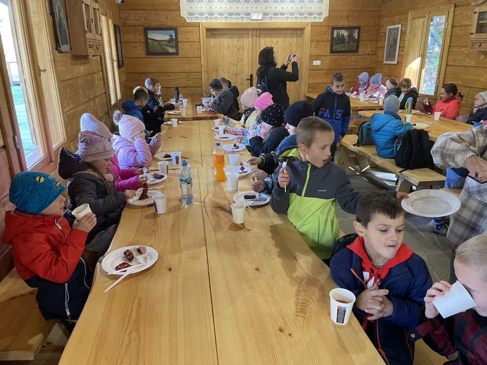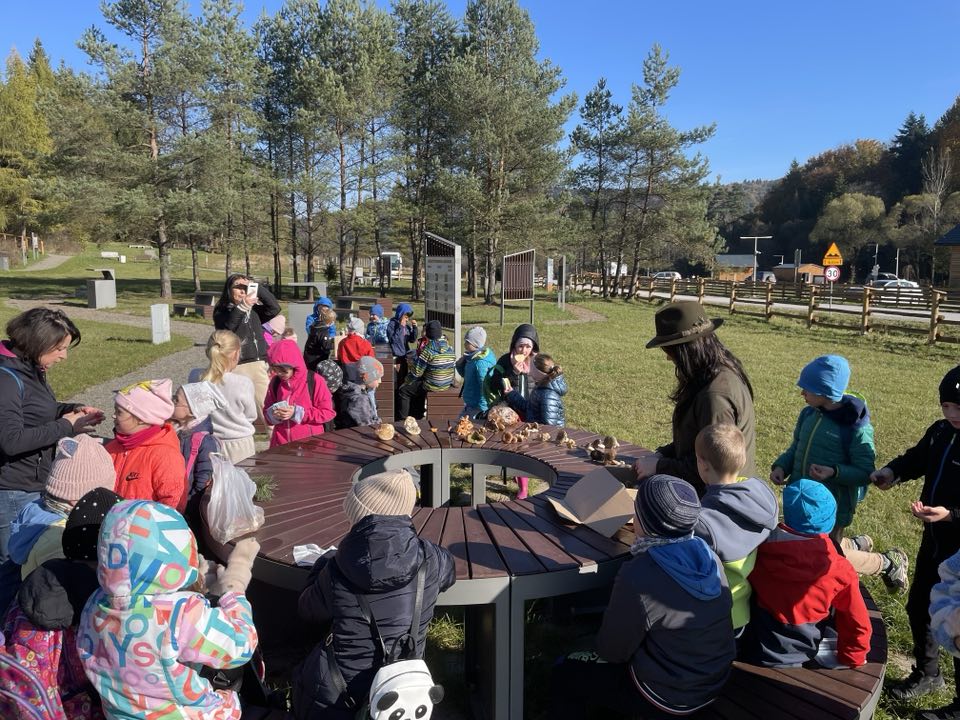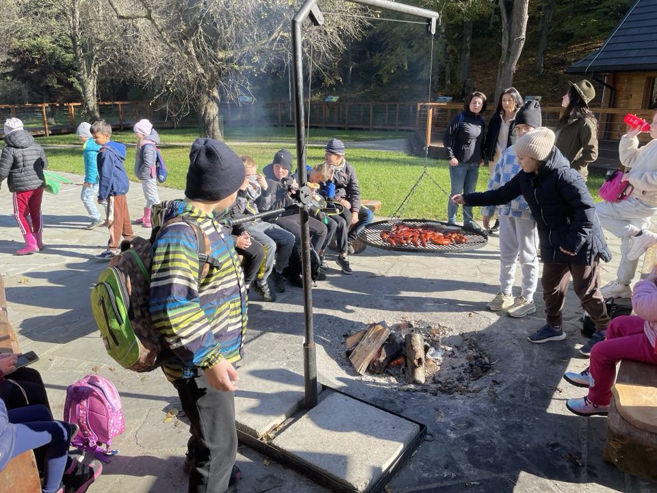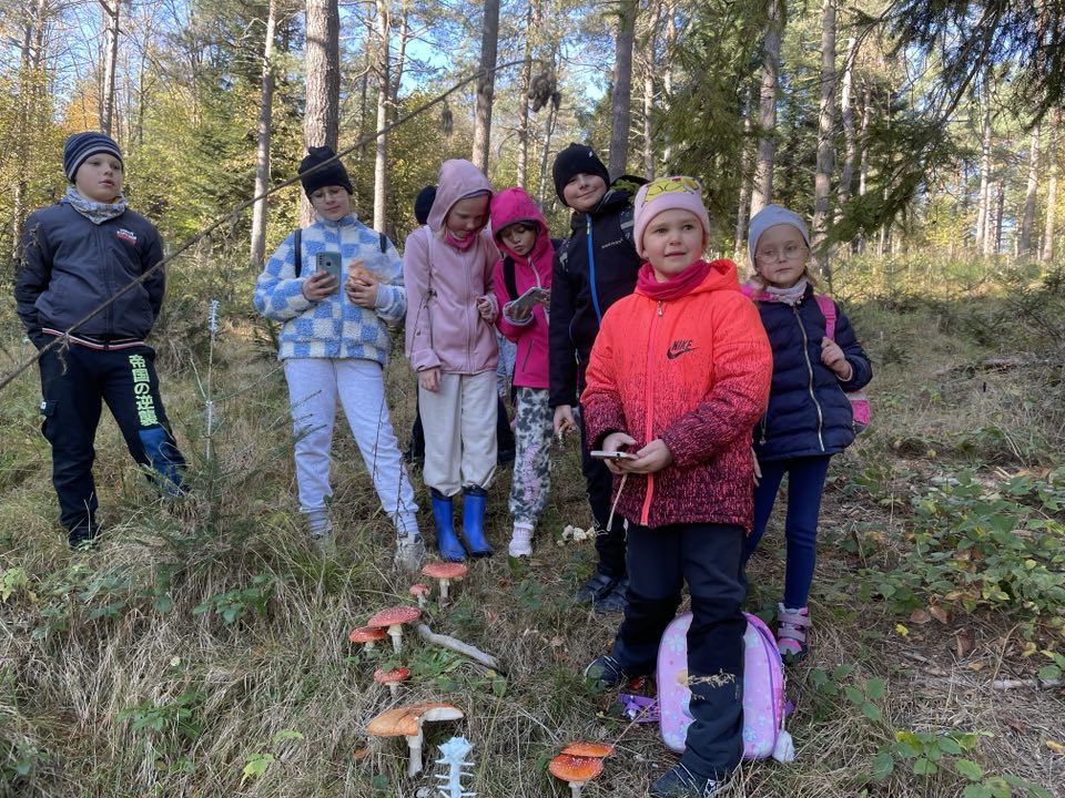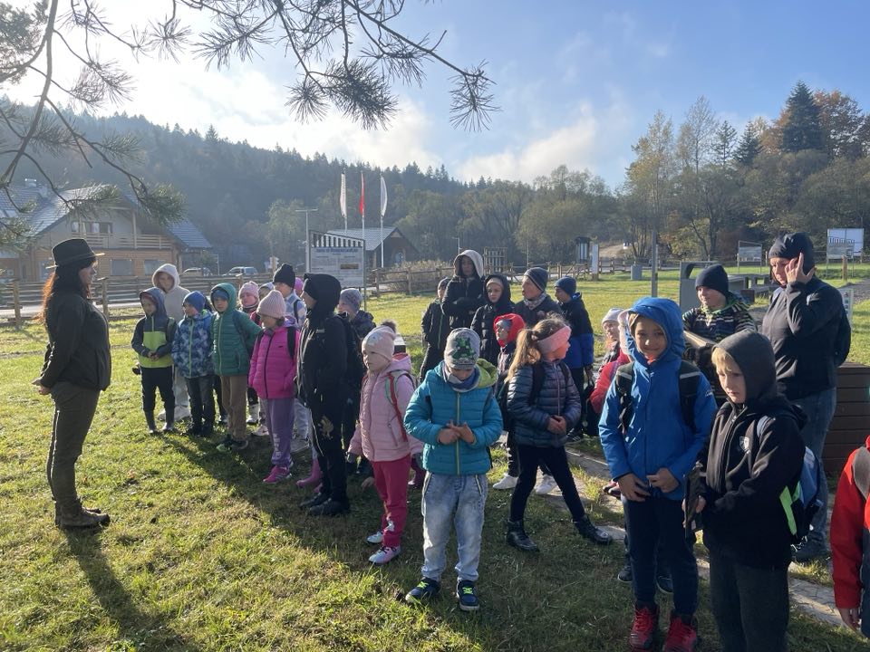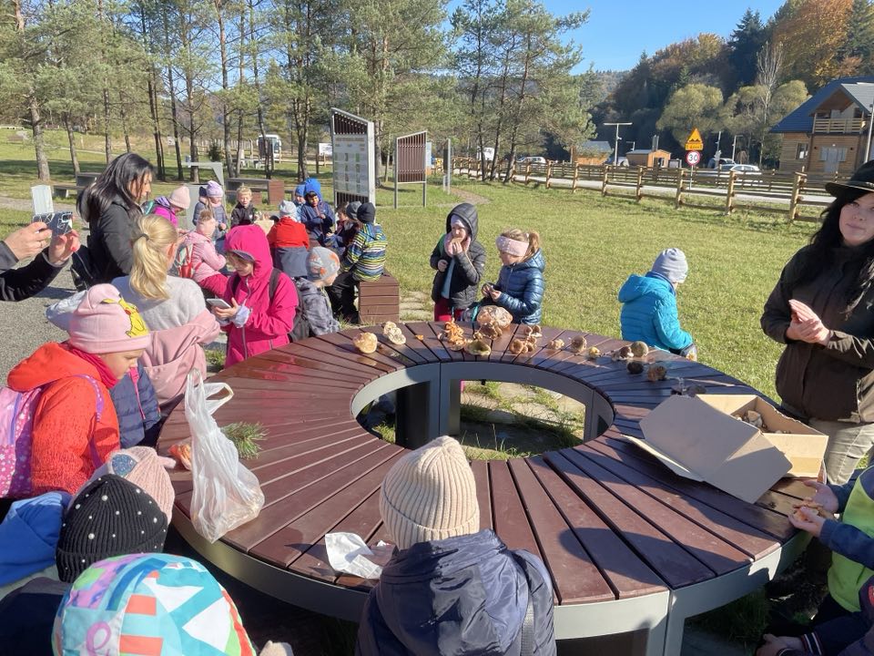W dniu 21 października 2024r. uczniowie klas 1-3 odbyli niezwykłą lekcję przyrody w Ośrodku Edukacji Ekologicznej Ekopark w Radocynie. Zajęcia zaczęły się od części teoretycznej, nasza przewodniczka opowiedział o najpopularniejszych gatunkach grzybów jadalnych, które możemy spotkać na terenie Beskidu Niskiego. Kolejnym punktem warsztatów była wycieczka do lasu, podczas której szukaliśmy grzybów. Każdy kolejny znaleziony grzyb pobudzał do aktywnego działania, uważnej obserwacji i koncentracji. Podczas spaceru mogliśmy podziwiać piękno przyrody, cieszyć się ciszą i spokojem lasu, a także obserwować ślady i tropy zwierząt. Ostatnim etapem warsztatów było omówienie zebranych grzybów i podzielenie je na jadalne i trujące. Nasze spotkanie zakończyliśmy ogniskiem. To był wyjątkowo udany dzień, lekcja przyrody w terenie dostarczyła nie tylko wielu niezapomnianych wrażeń, ale także pozwoliła nam lepiej poznać przyrodę regionu.