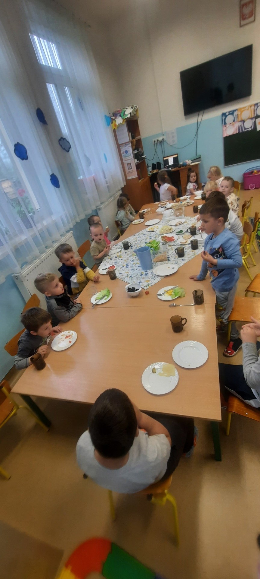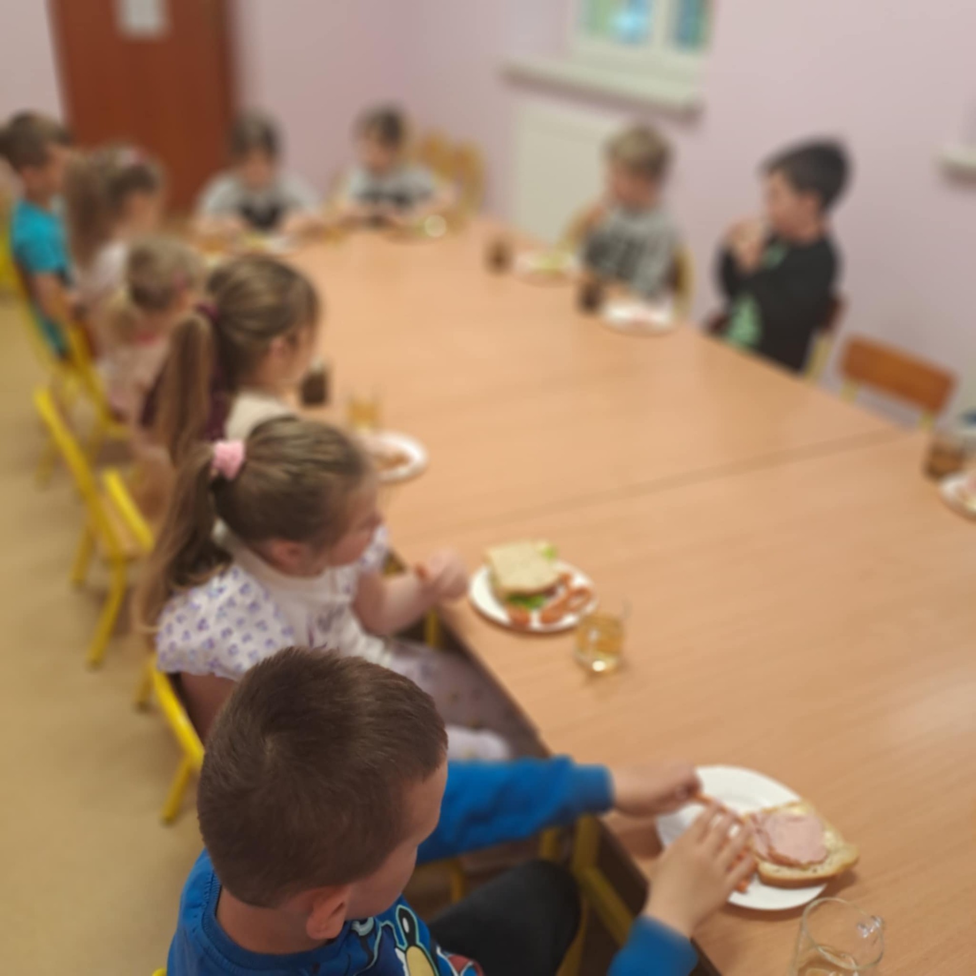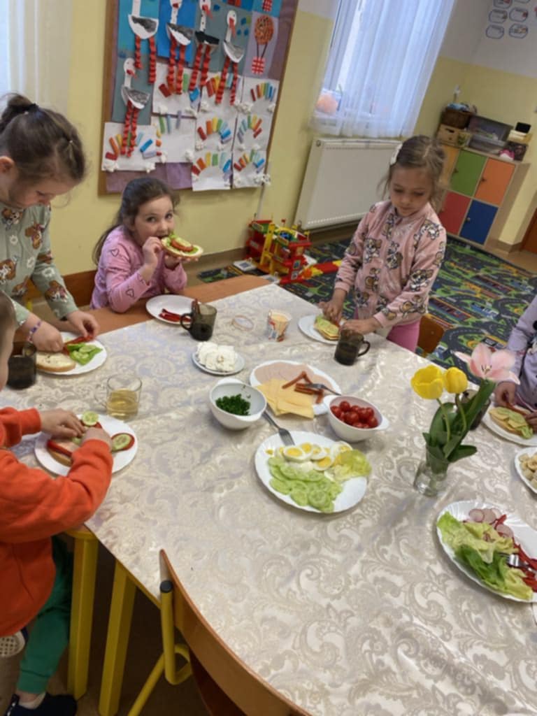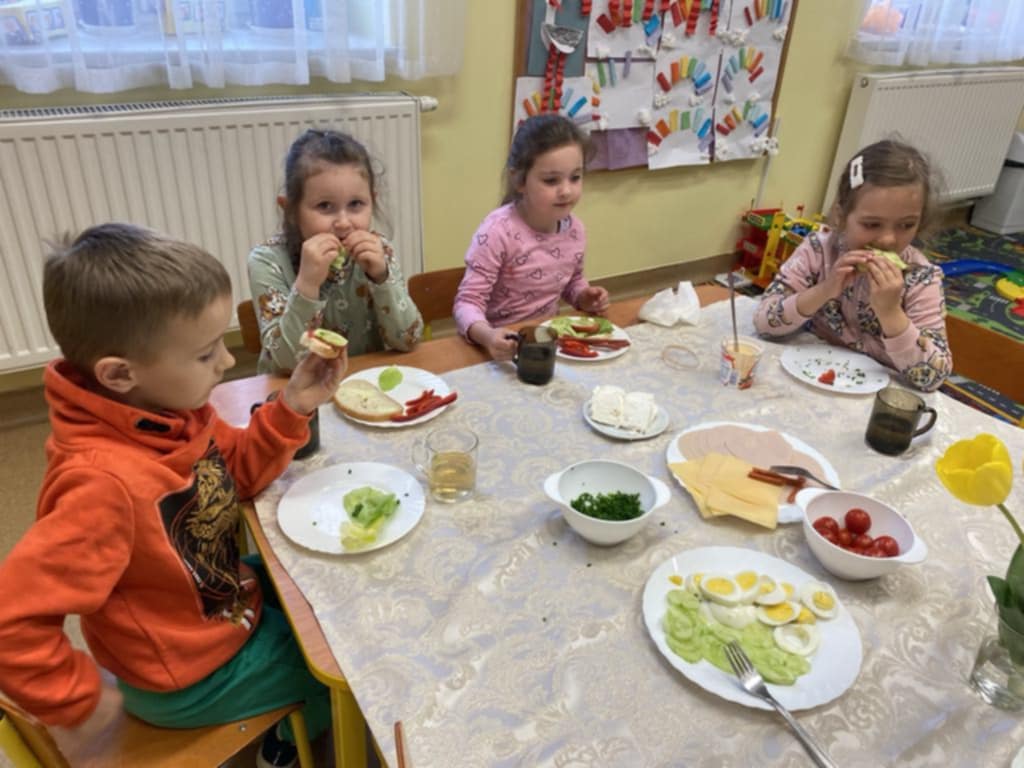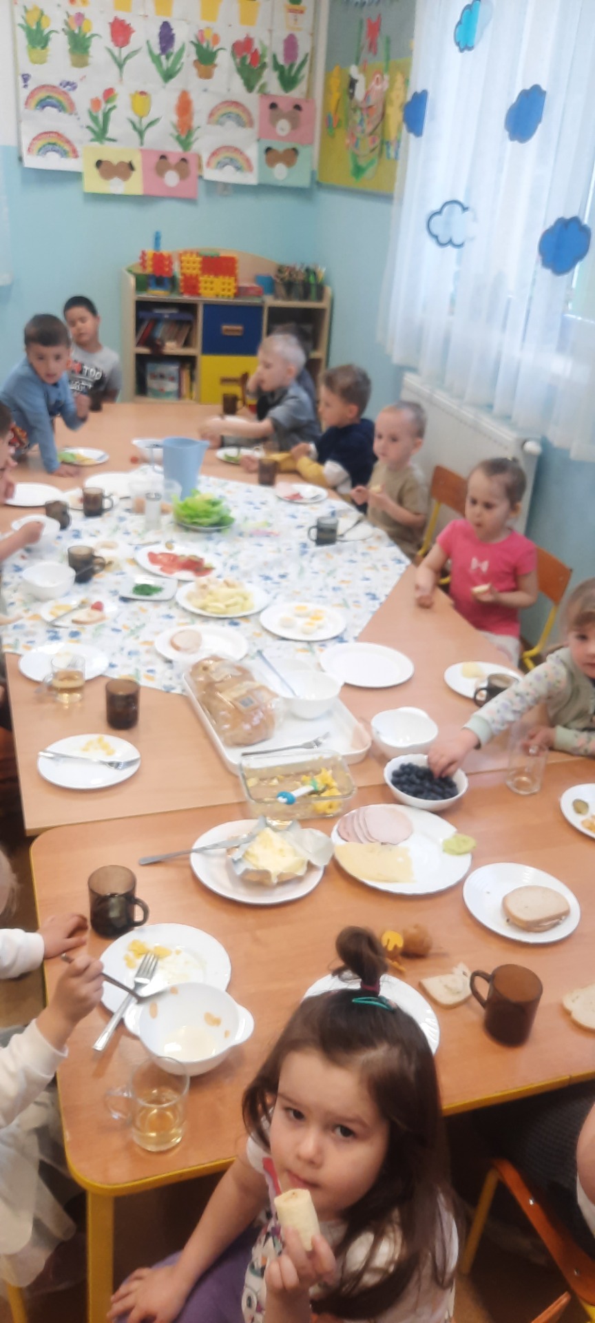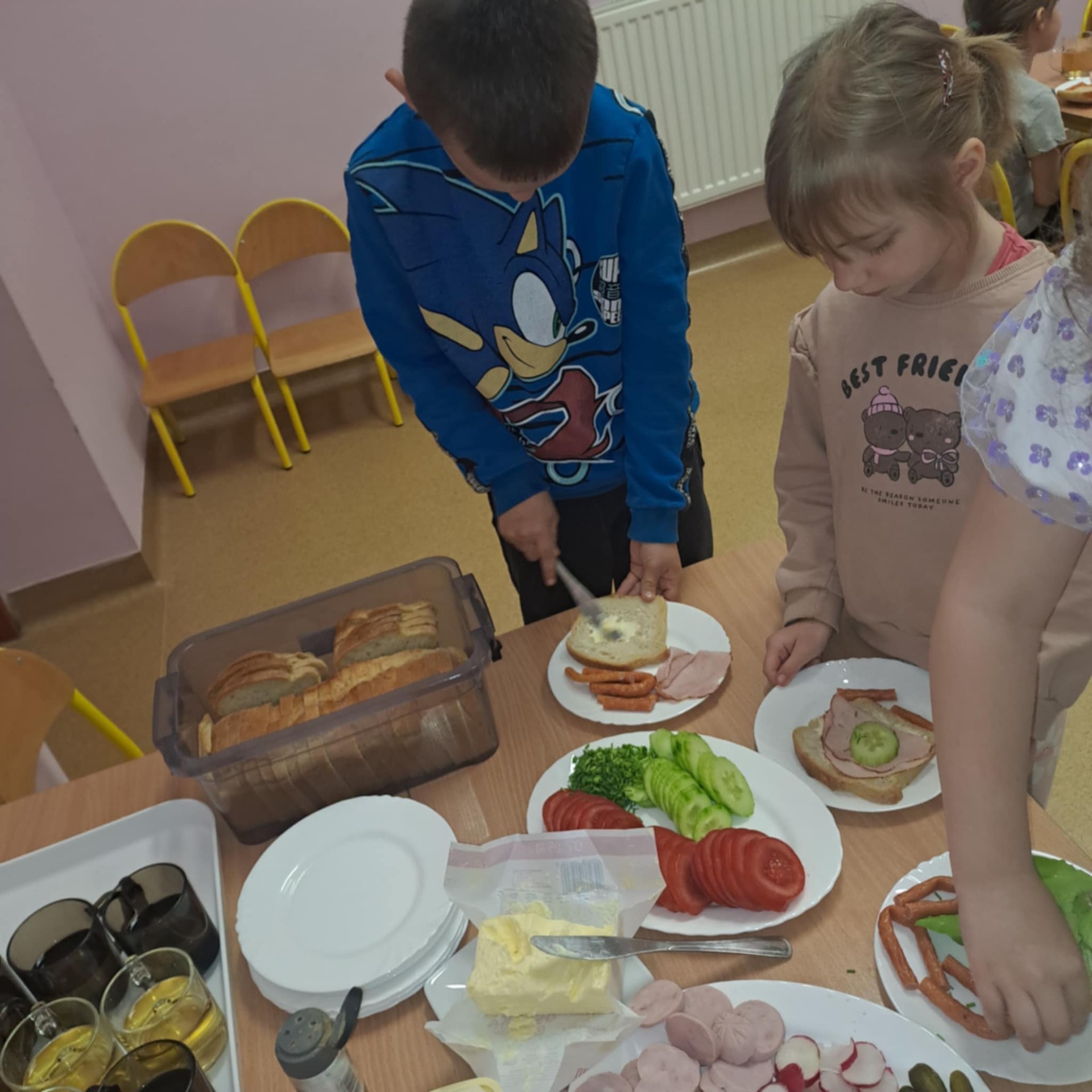 Nasze zdrowe, kolorowe śniadanie – takie było hasło przewodnie w tym dniu. 25 kwietnia 2025 roku nasze przedszkolaki obchodziły Europejski Dzień Zdrowego Śniadania. Dzieci dowiedziały się, że śniadanie to najważniejszy posiłek dnia. W tym dniu dzieci samodzielnie komponowały swoje kanapki. Na stołach oprócz tradycyjnej wędliny, żółtego sera i wielu warzyw nie zabrakło również gotowanych jajek ale i tych w formie jajecznicy. Oczywiście po śniadaniu czas na deser, na który składały się owoce takie jak: borówki, jabłka banany. W tym dniu dzieci nie bały się próbować nowych smaków. Takie śniadanie było dla nich prawdziwą frajdą. Na twarzach rysował się uśmiech. Dzień Zdrowego Śniadania był bardzo ciekawym doświadczeniem dla wszystkich dzieci.