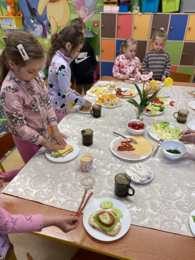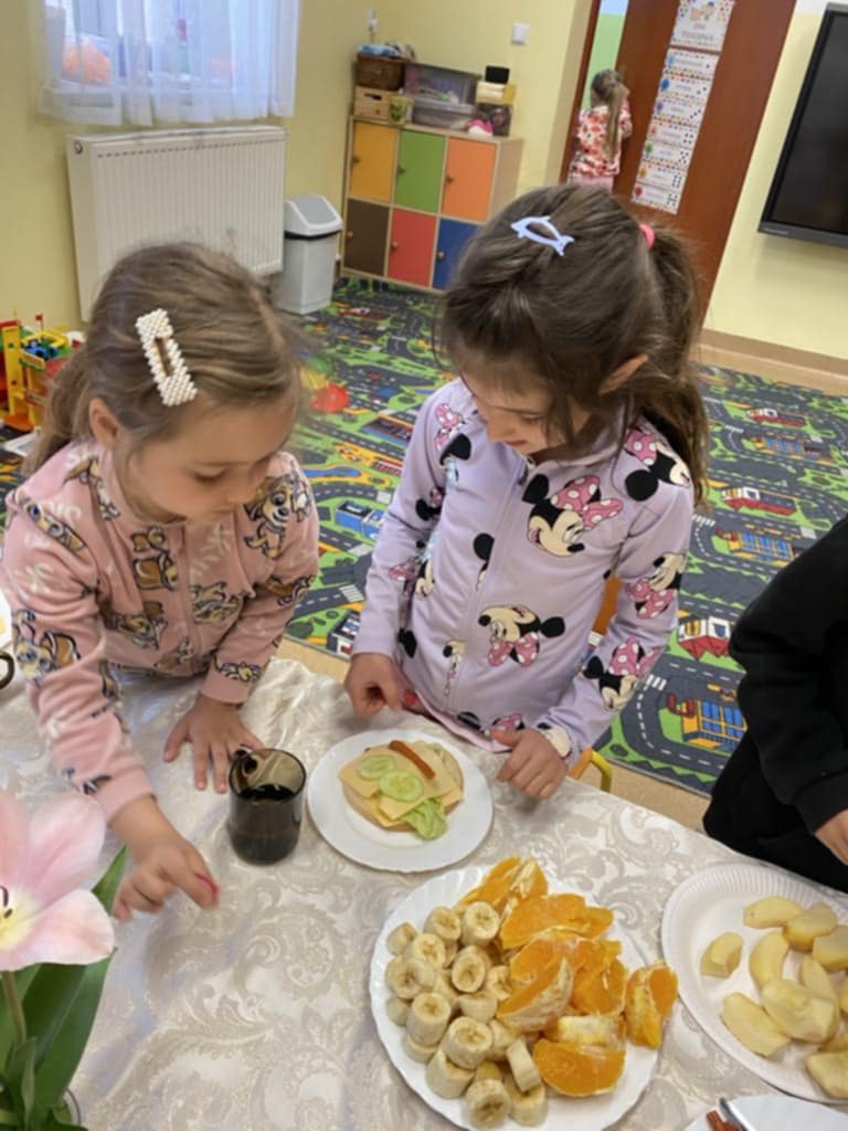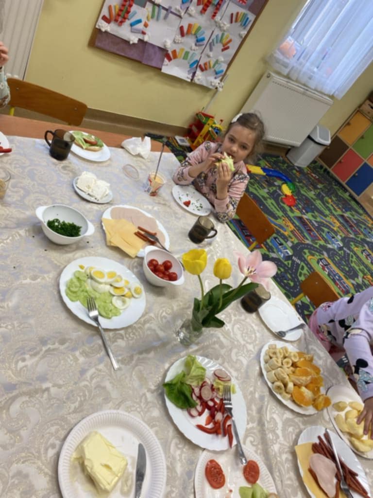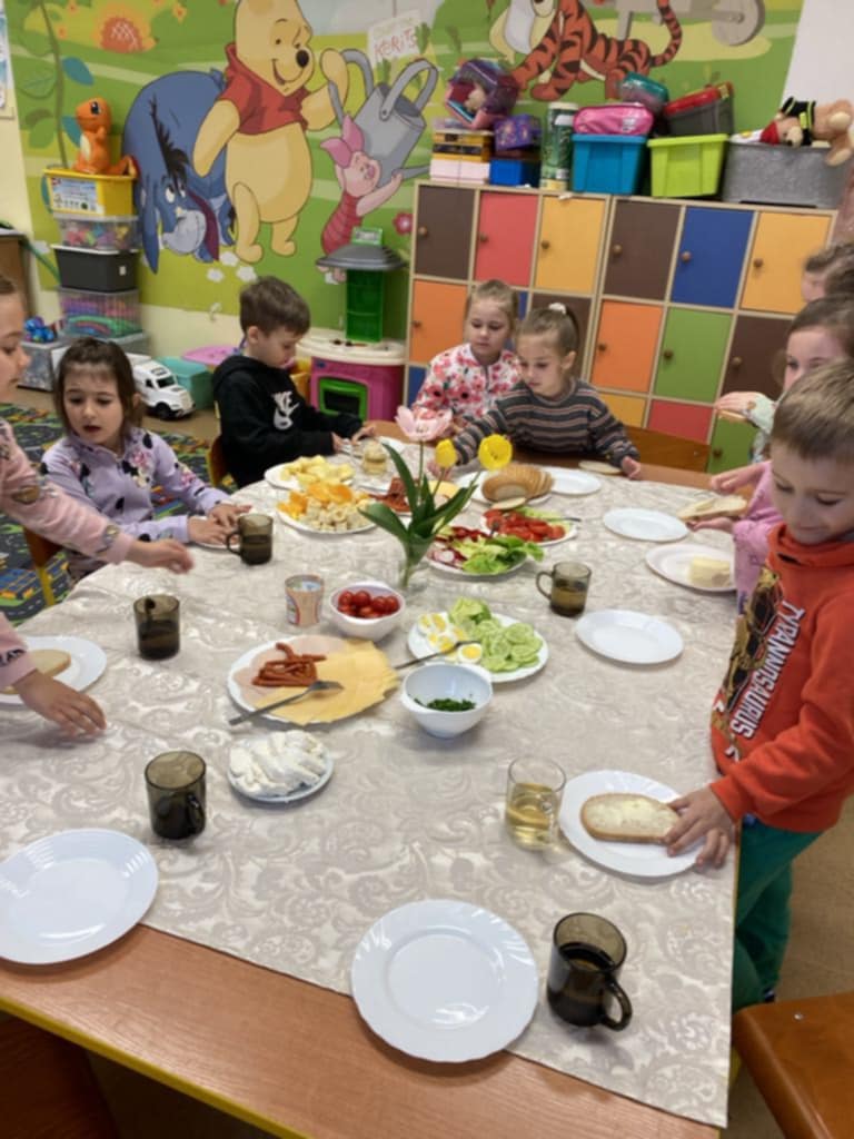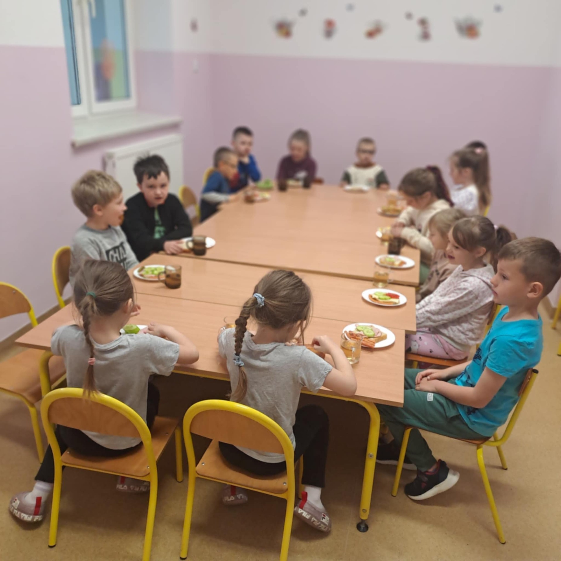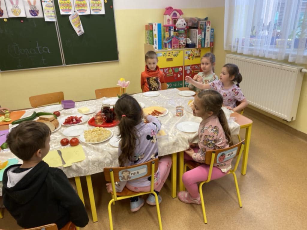 Nasze zdrowe, kolorowe śniadanie – takie było hasło przewodnie w tym dniu. 25 kwietnia 2025 roku nasze przedszkolaki obchodziły Europejski Dzień Zdrowego Śniadania. Dzieci dowiedziały się, że śniadanie to najważniejszy posiłek dnia. W tym dniu dzieci samodzielnie komponowały swoje kanapki. Na stołach oprócz tradycyjnej wędliny, żółtego sera i wielu warzyw nie zabrakło również gotowanych jajek ale i tych w formie jajecznicy. Oczywiście po śniadaniu czas na deser, na który składały się owoce takie jak: borówki, jabłka banany. W tym dniu dzieci nie bały się próbować nowych smaków. Takie śniadanie było dla nich prawdziwą frajdą. Na twarzach rysował się uśmiech. Dzień Zdrowego Śniadania był bardzo ciekawym doświadczeniem dla wszystkich dzieci.