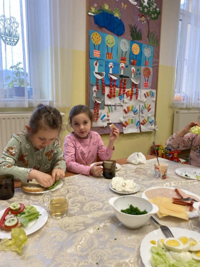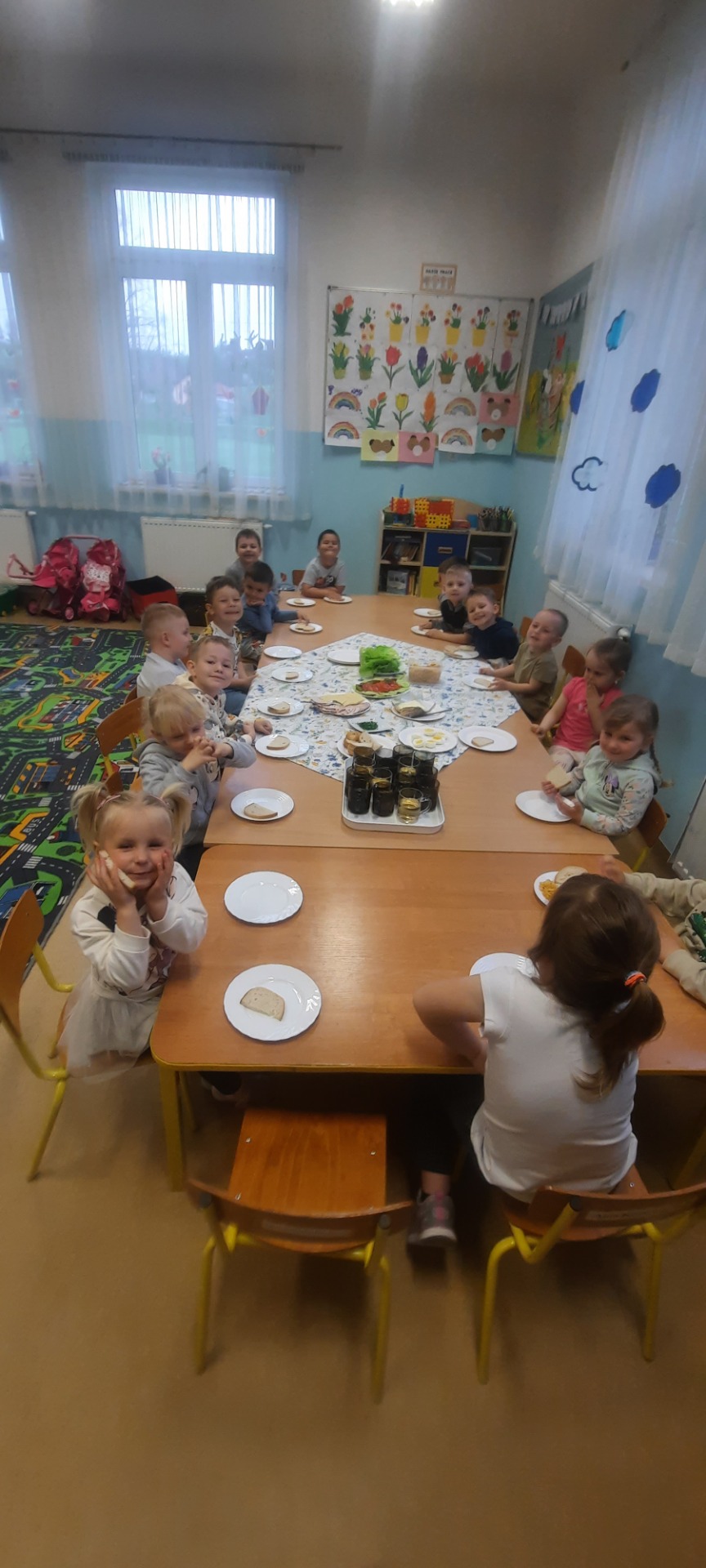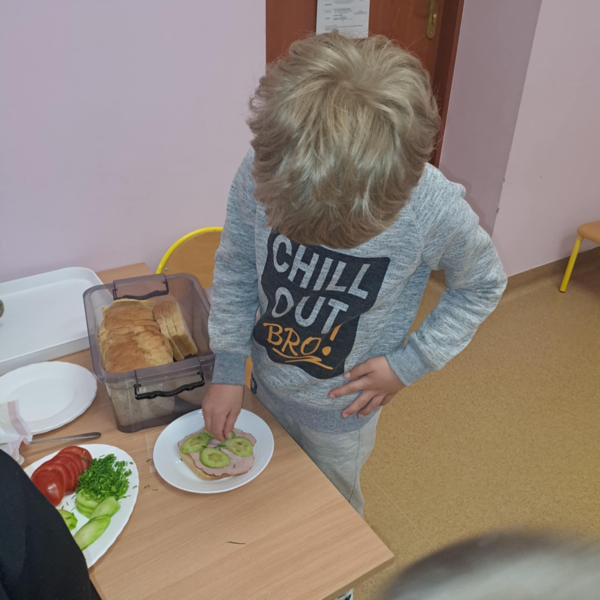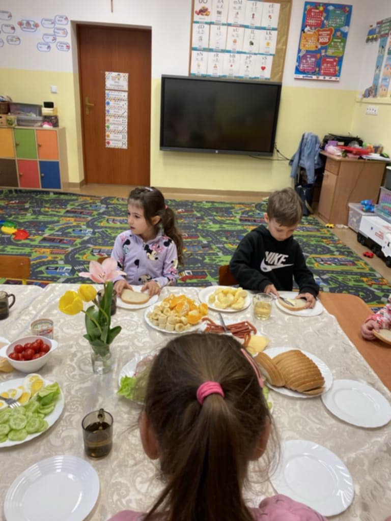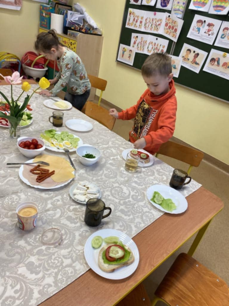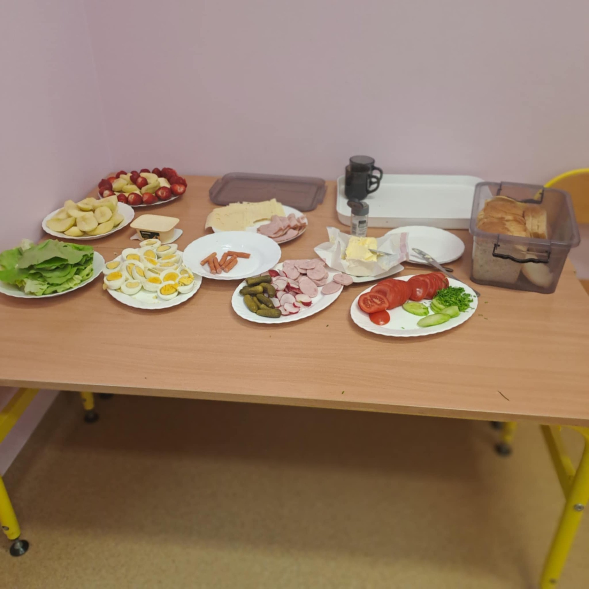 Nasze zdrowe, kolorowe śniadanie – takie było hasło przewodnie w tym dniu. 25 kwietnia 2025 roku nasze przedszkolaki obchodziły Europejski Dzień Zdrowego Śniadania. Dzieci dowiedziały się, że śniadanie to najważniejszy posiłek dnia. W tym dniu dzieci samodzielnie komponowały swoje kanapki. Na stołach oprócz tradycyjnej wędliny, żółtego sera i wielu warzyw nie zabrakło również gotowanych jajek ale i tych w formie jajecznicy. Oczywiście po śniadaniu czas na deser, na który składały się owoce takie jak: borówki, jabłka banany. W tym dniu dzieci nie bały się próbować nowych smaków. Takie śniadanie było dla nich prawdziwą frajdą. Na twarzach rysował się uśmiech. Dzień Zdrowego Śniadania był bardzo ciekawym doświadczeniem dla wszystkich dzieci.