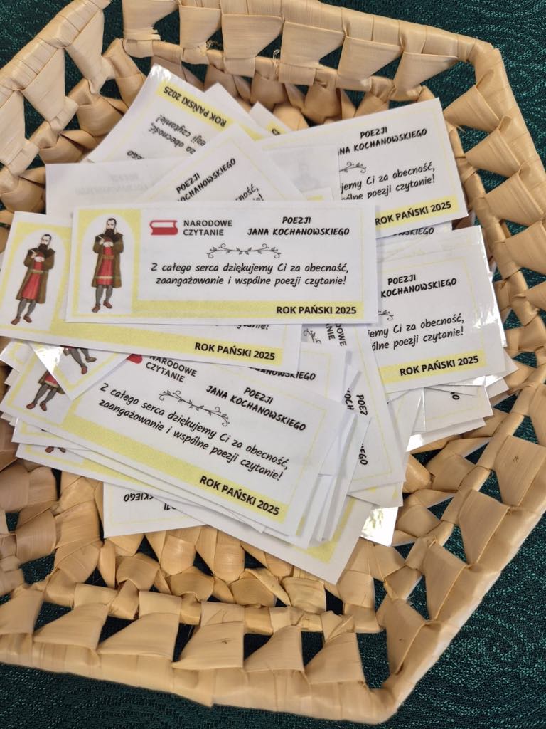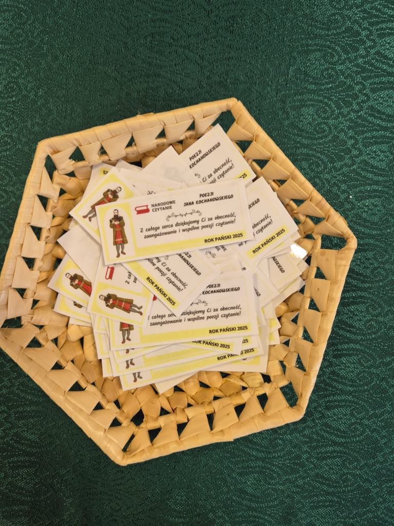11 września 2025 roku nasza szkoła włączyła się w ogólnopolską akcję Narodowego Czytania organizowaną pod honorowym patronatem Prezydenta Rzeczypospolitej Polskiej. Tegoroczna edycja poświęcona była twórczości Jana Kochanowskiego — jednego z najwybitniejszych poetów epoki renesansu.