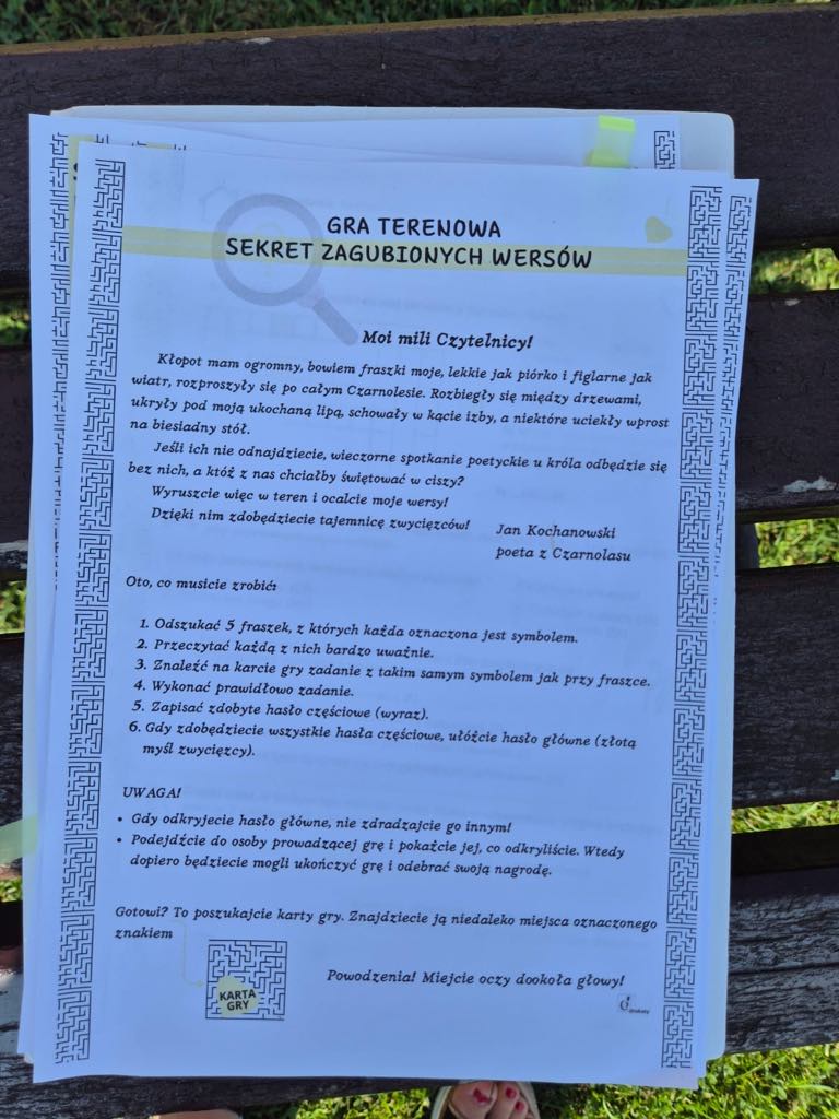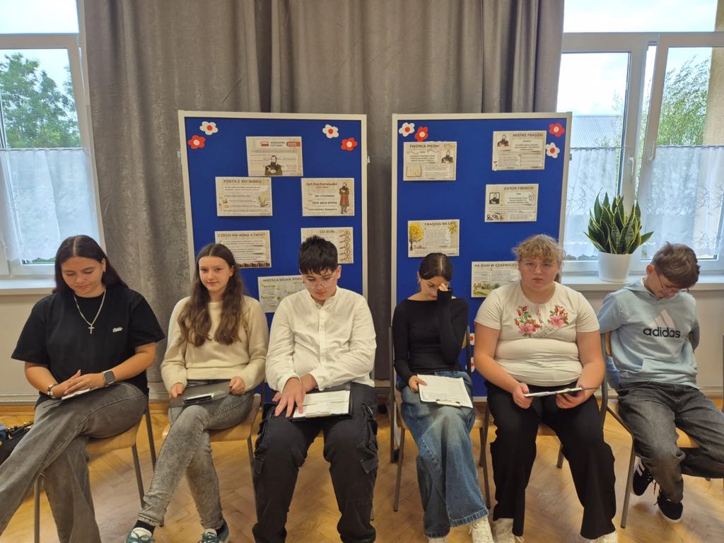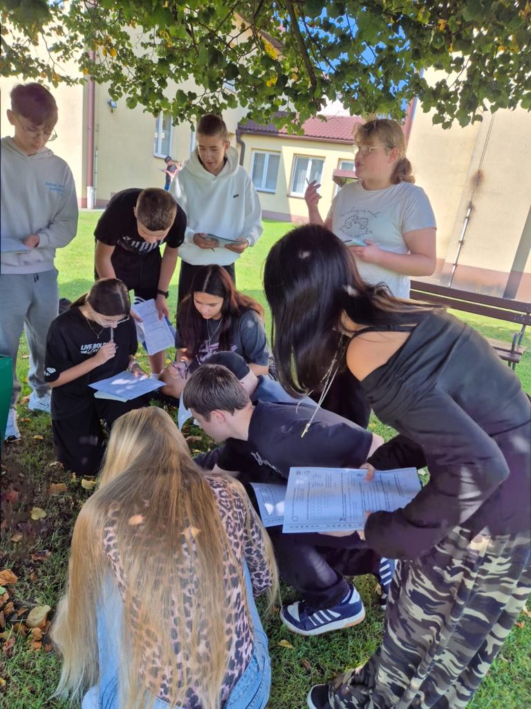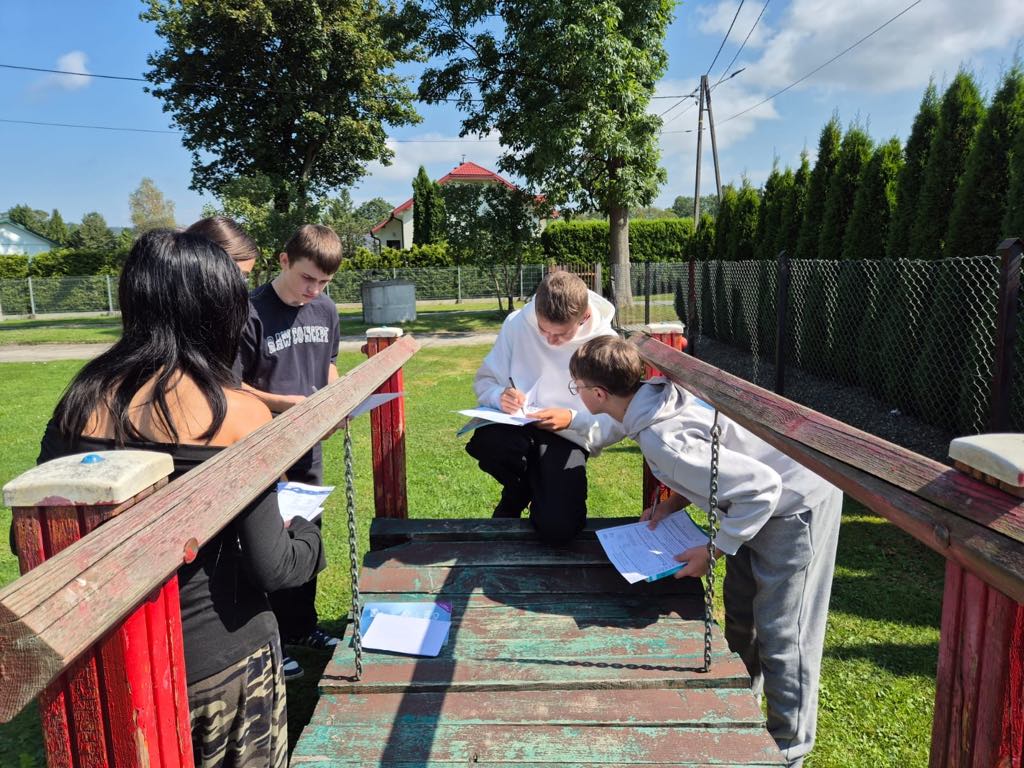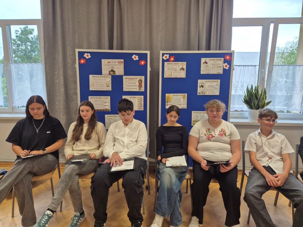 Klasa VIII uczestniczyła w grze terenowej ,,Sekret zagubionych wersów” poświęconej fraszkom mistrza. Uczniowie musieli odnaleźć schowane teksty z fraszkami, a następnie wykonać zadanie z karty pracy. Było ciekawie,a momentami intrygująco.