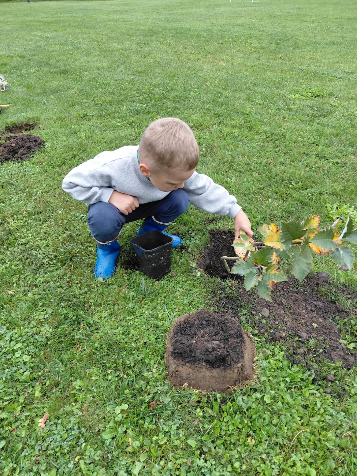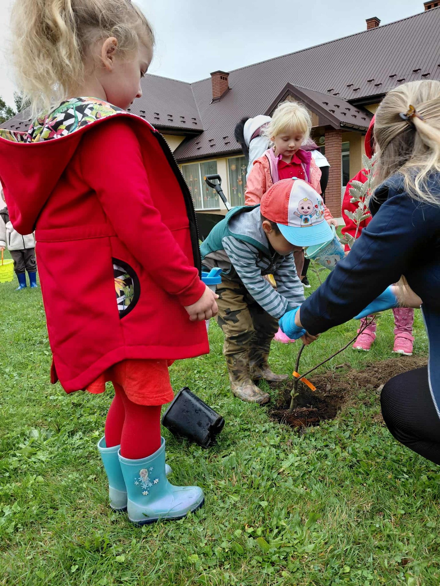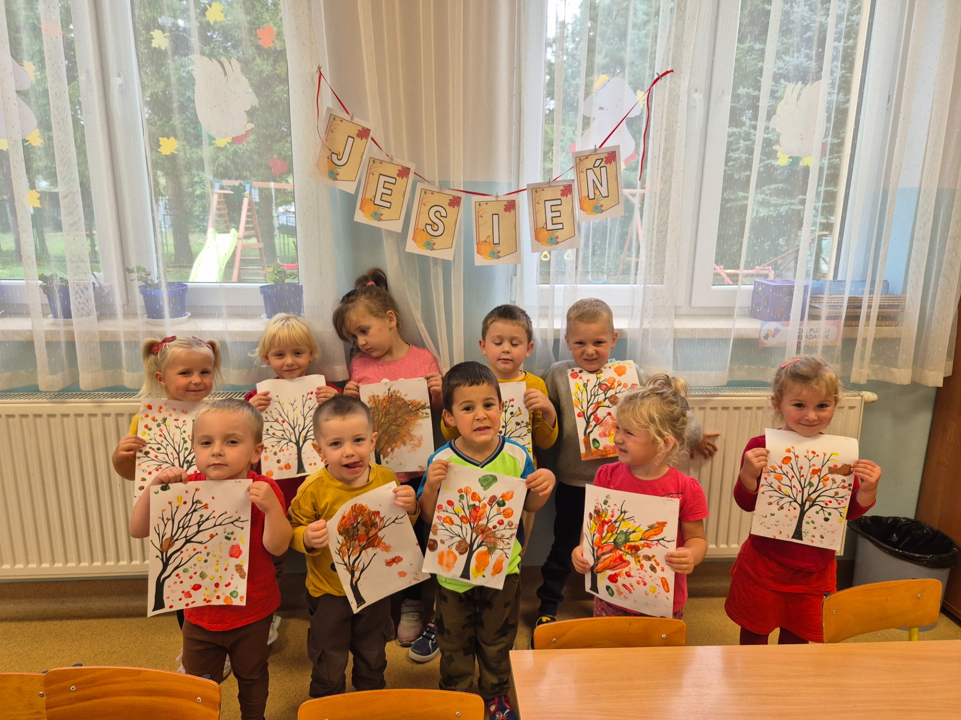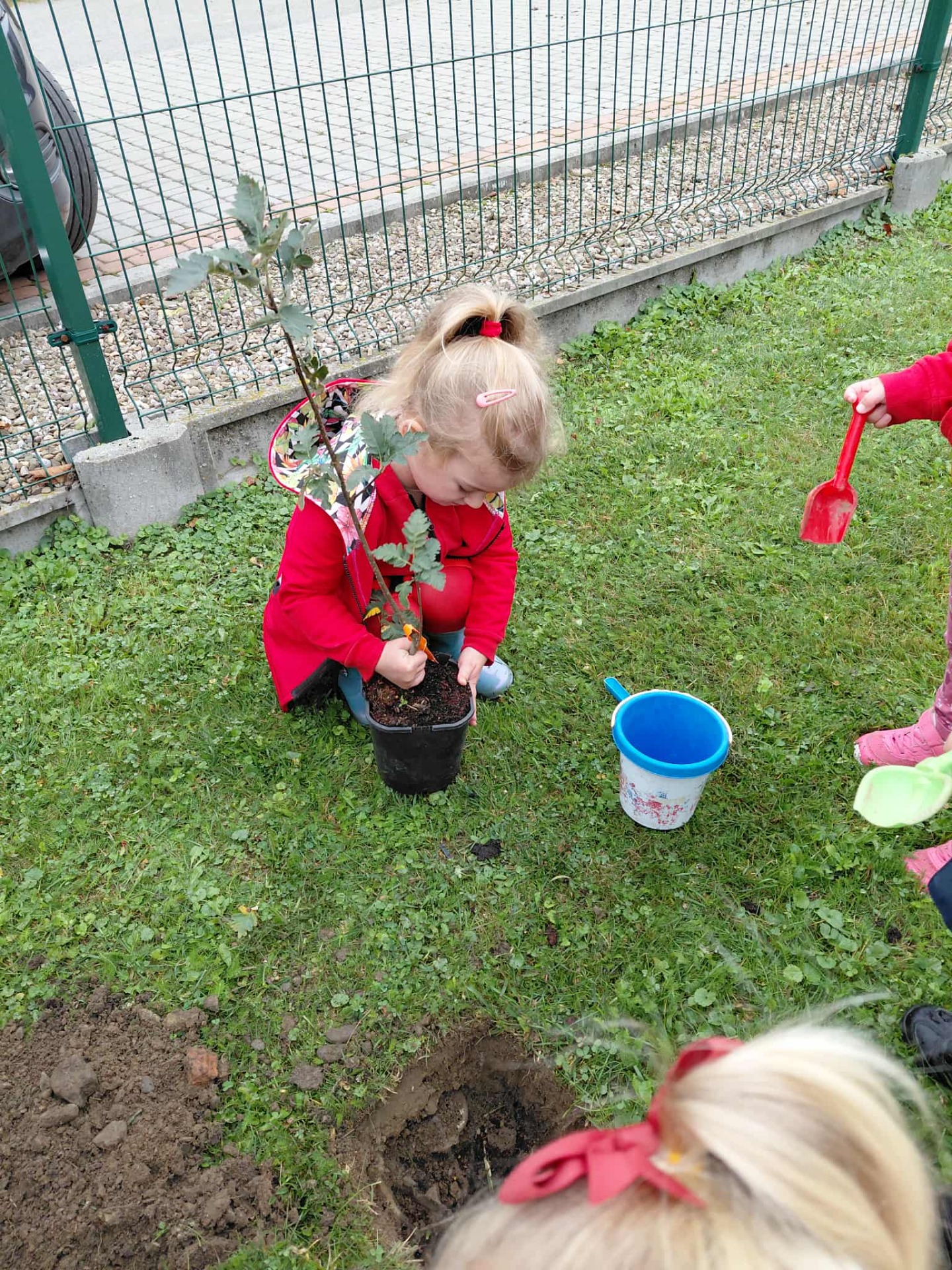Wszyscy wiemy, że pierwszy Dzień Jesieni przypada na 23 września, dlatego dzieci z naszego przedszkola w ten dzień witały Panią Jesień w nietypowy sposób. Zaczęliśmy od posadzenia w ogrodzie przedszkolnym krzewów oraz różnych sadzonek drzew m.in. lipa, jarzębina. Dzieci dzielnie pomagały, wykazywały zainteresowanie, wkładały sadzonki do dziur, nosiły ziemię.