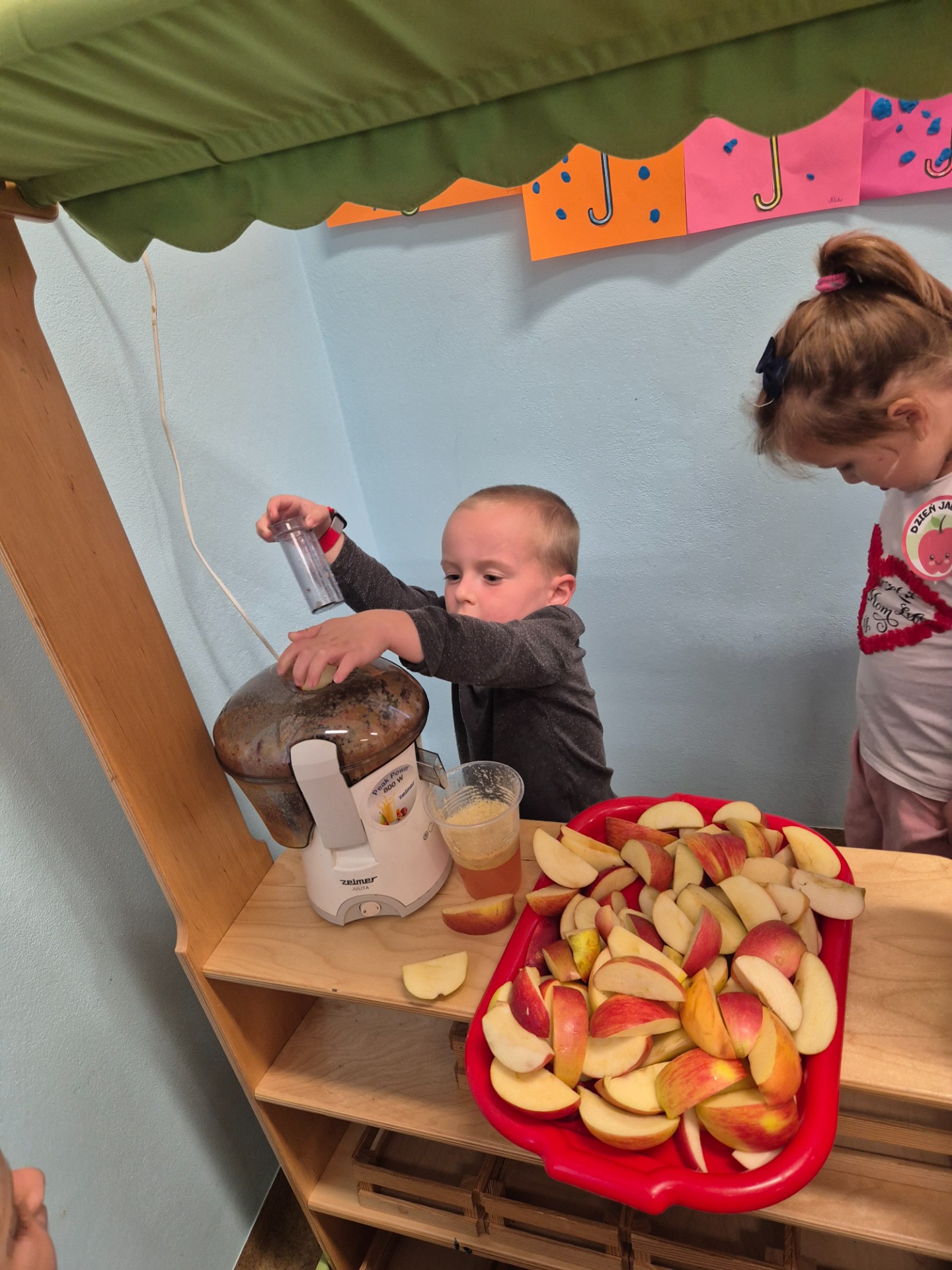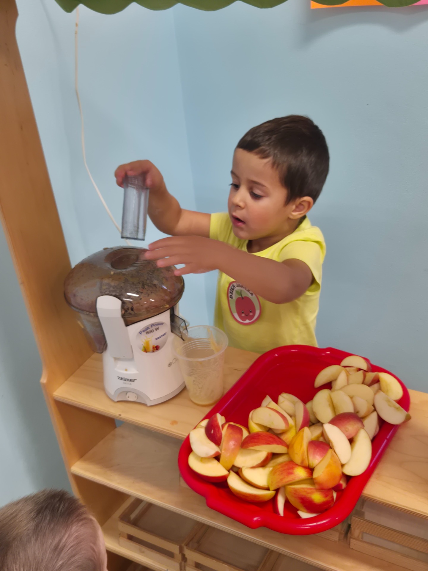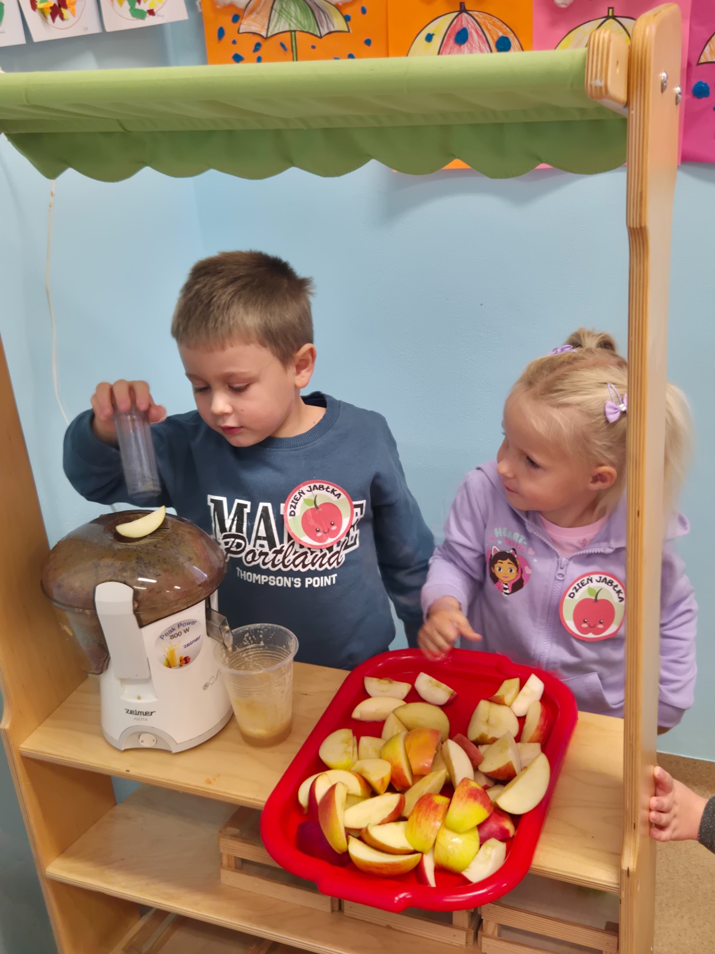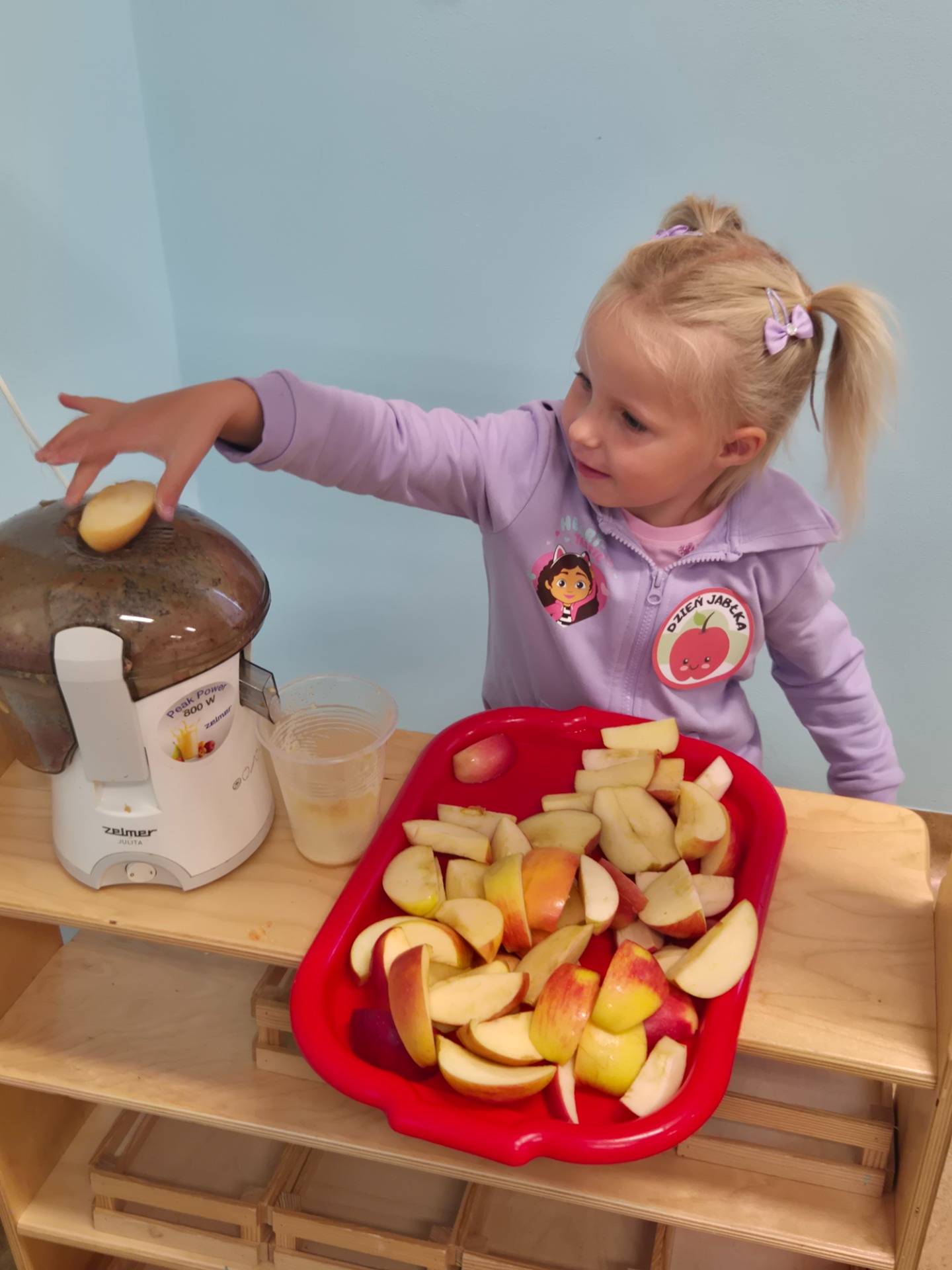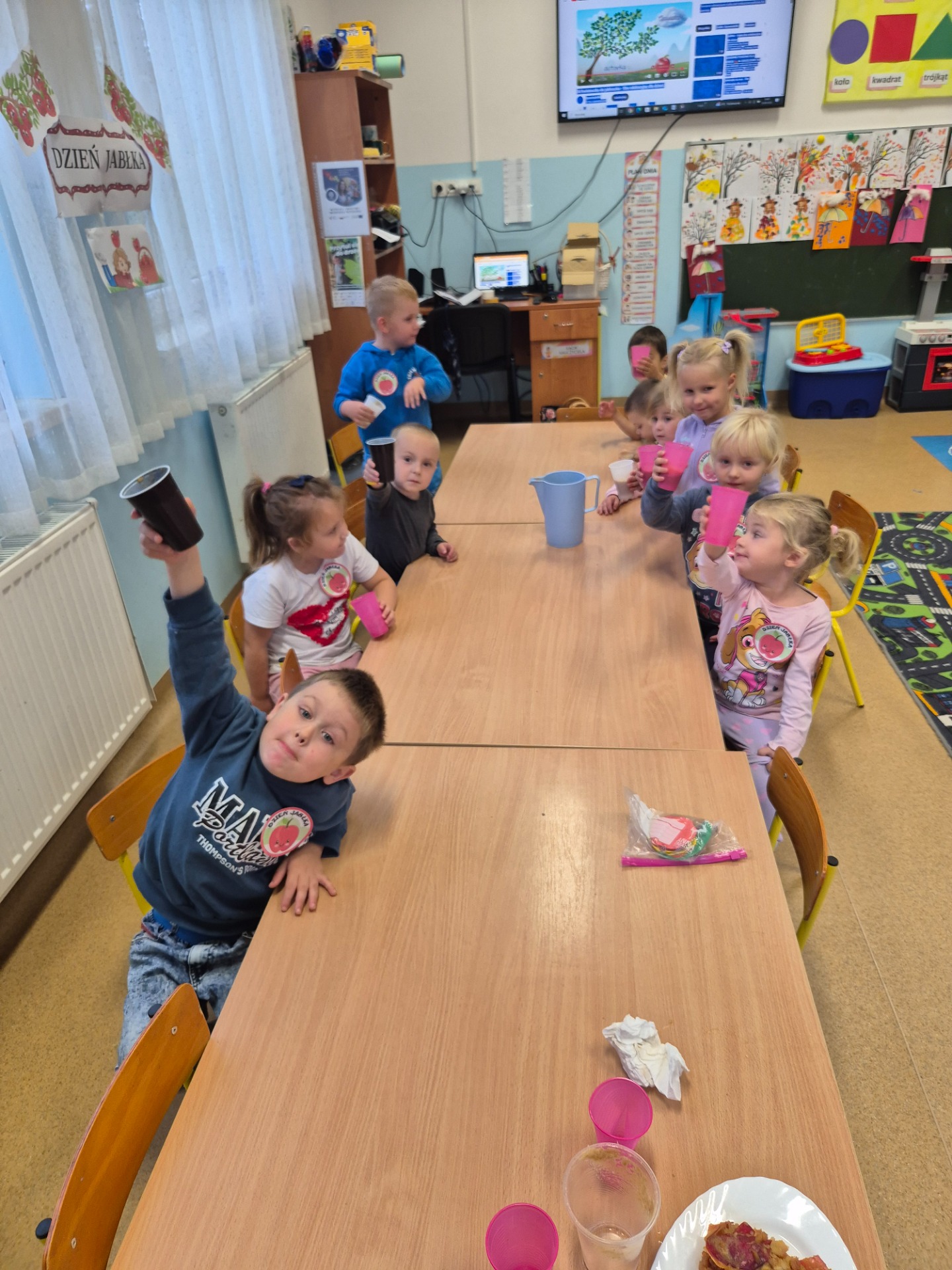 Dnia 29 września 2025 roku dzieci z naszego przedszkola obchodziły Światowy Dzień Jabłka. Celem zajęć i wspólnej zabawy było: zachęcenie dzieci do spożywania jabłek i ich przetworów. Przedszkolaki rozwiązywały zagadki, słuchały wierszy i piosenek o jabłuszku. W tym dniu zarówno maluszki jak i starszaki przygotowywały sok jabłkowy, który potem wypijały. Podczas zajęć nie zabrakło także słodkiego i zarazem zdrowego poczęstunku z jabłek. To był bardzo ciekawy dzień w przedszkolu.