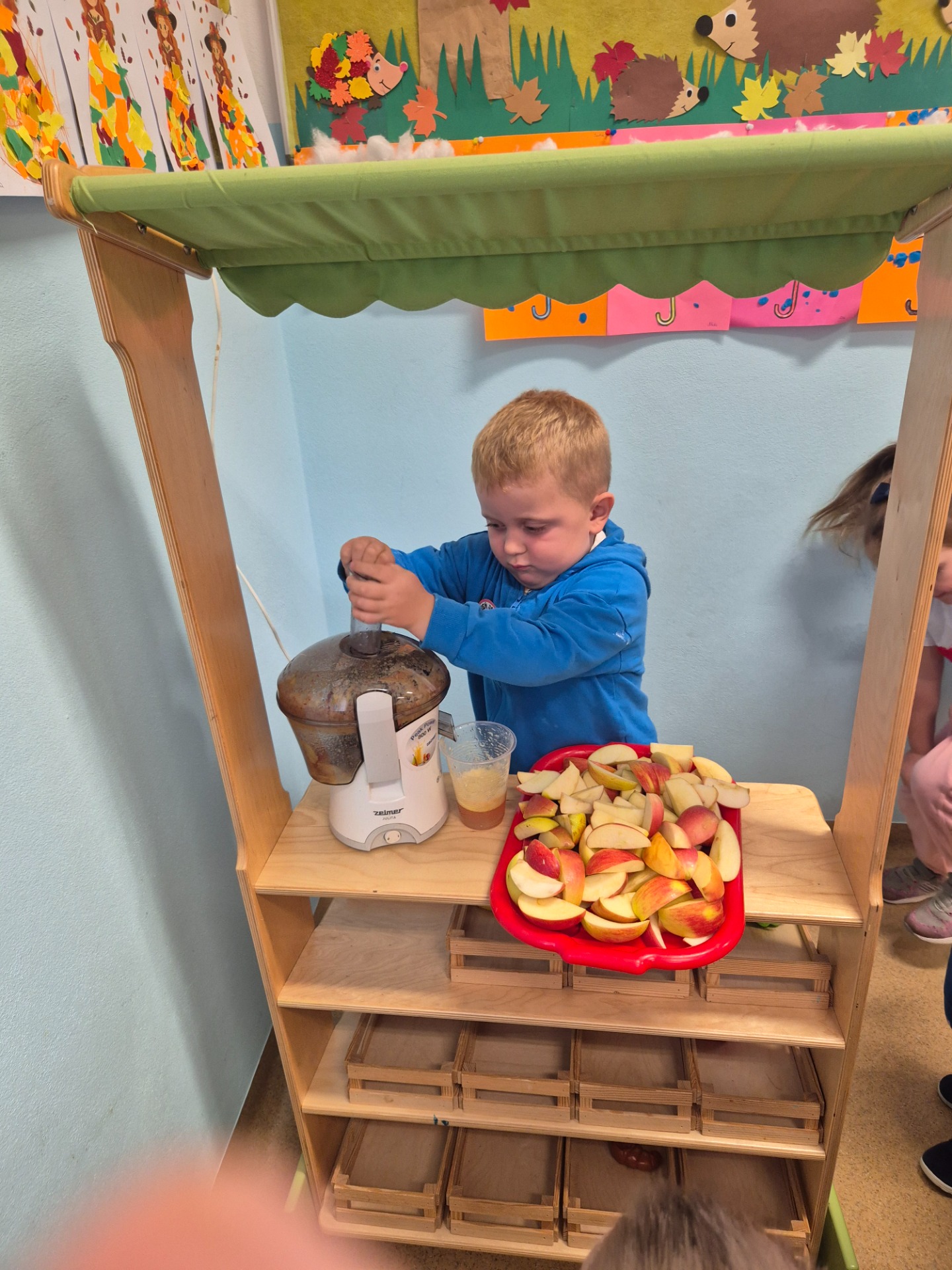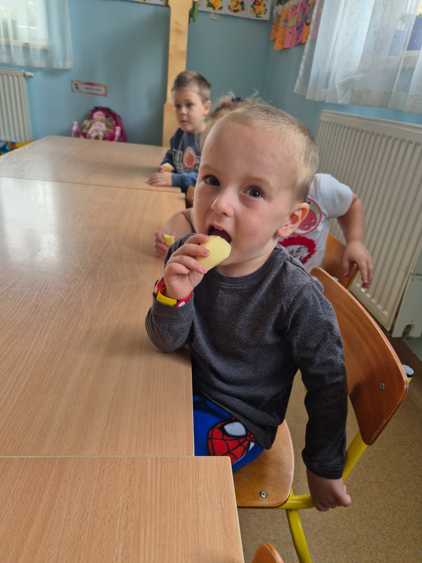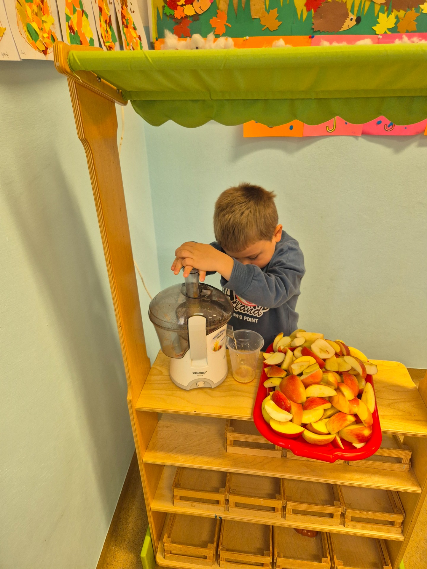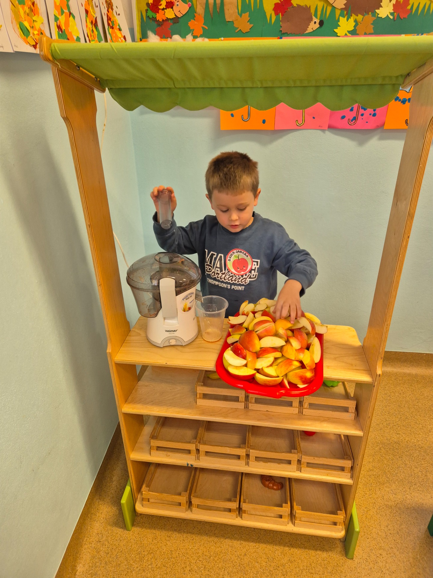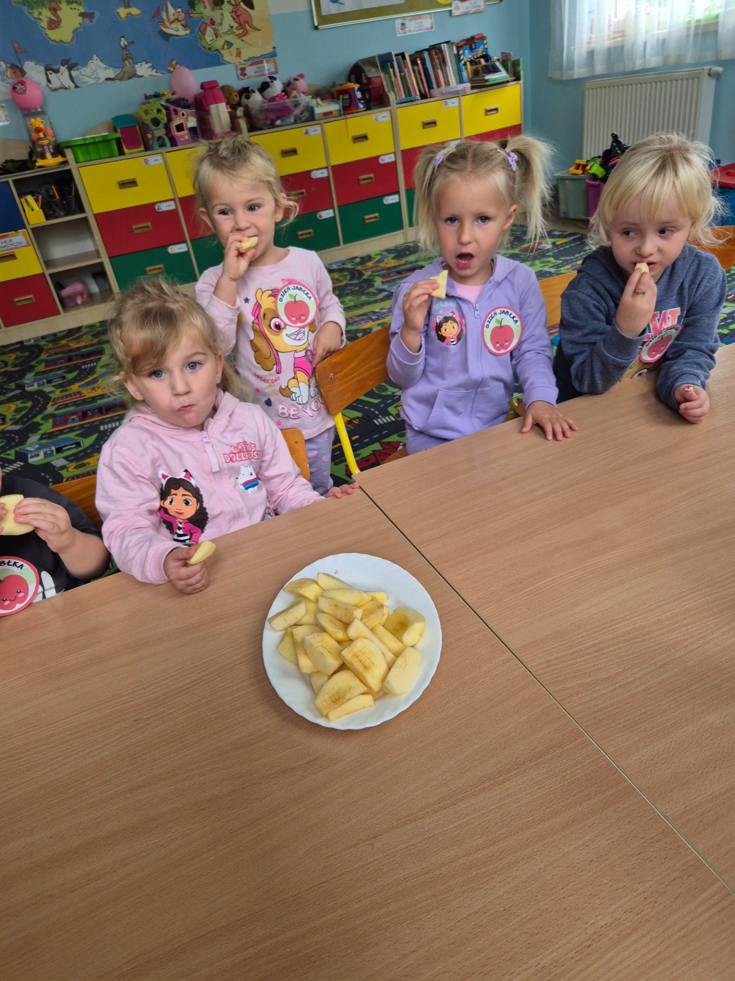 Dnia 29 września 2025 roku dzieci z naszego przedszkola obchodziły Światowy Dzień Jabłka. Celem zajęć i wspólnej zabawy było: zachęcenie dzieci do spożywania jabłek i ich przetworów. Przedszkolaki rozwiązywały zagadki, słuchały wierszy i piosenek o jabłuszku. W tym dniu zarówno maluszki jak i starszaki przygotowywały sok jabłkowy, który potem wypijały. Podczas zajęć nie zabrakło także słodkiego i zarazem zdrowego poczęstunku z jabłek. To był bardzo ciekawy dzień w przedszkolu.