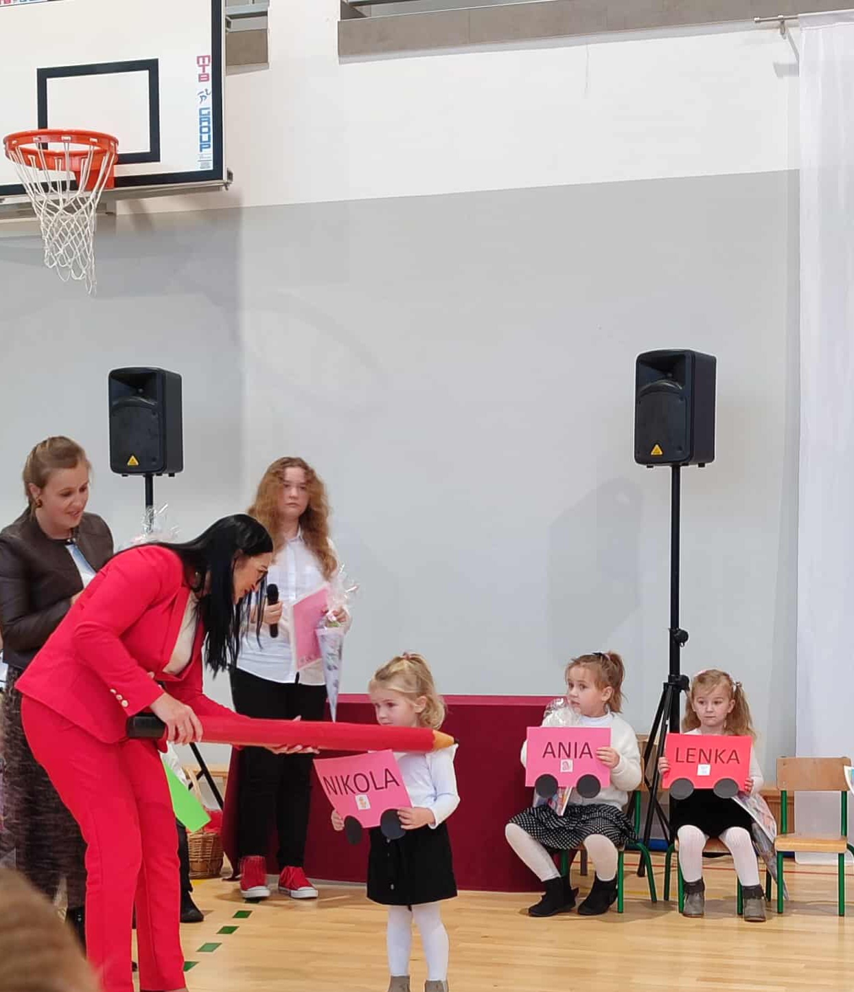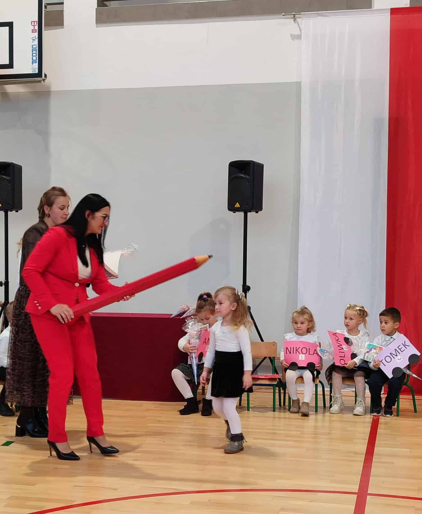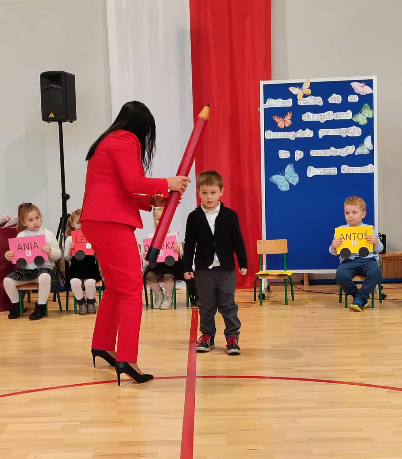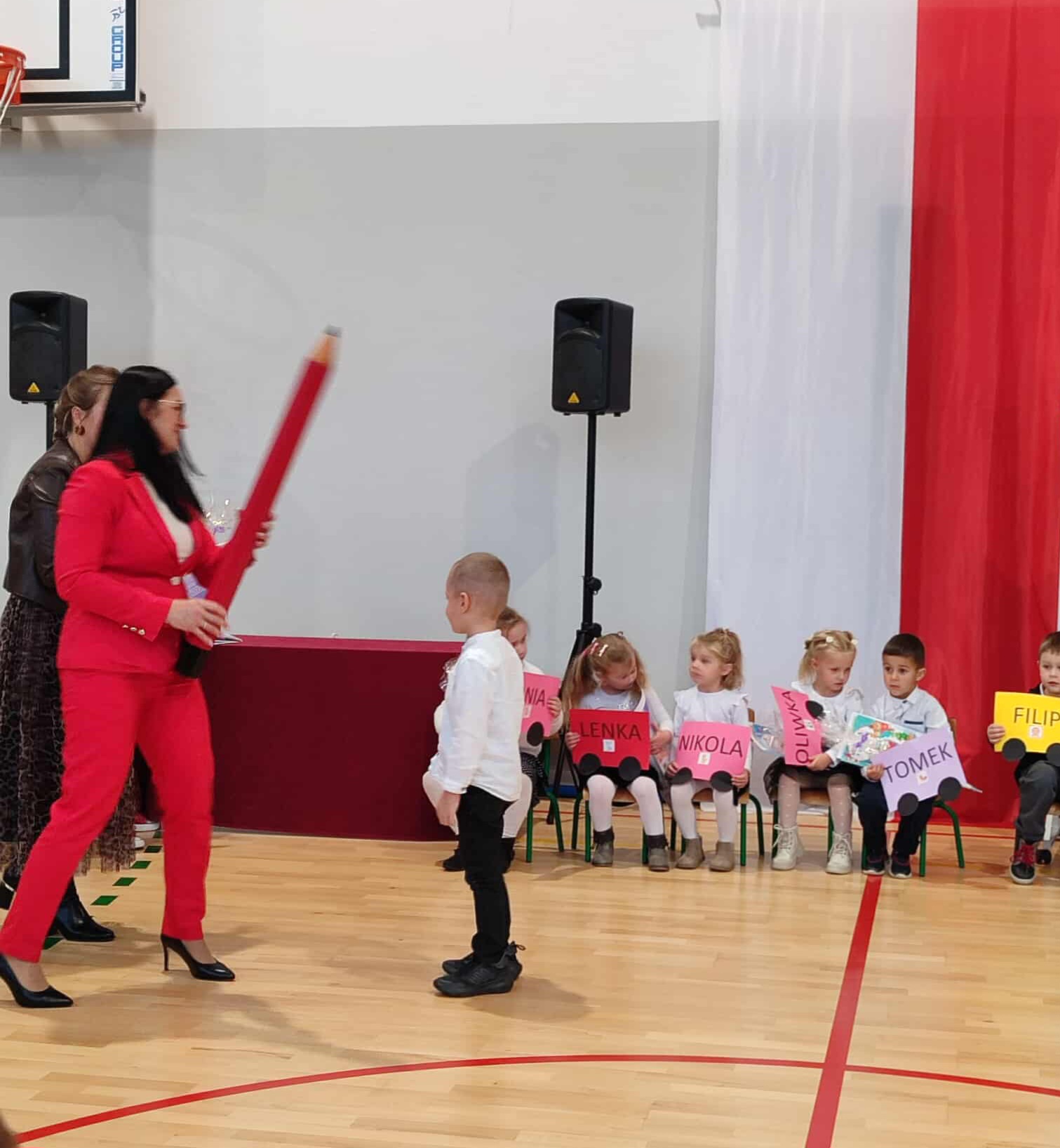 Dnia 14 października 2025 roku słowa powyższej piosenki można było usłyszeć na sali w Gładyszowie, gdzie odbyło sie uroczyste Pasowanie na Przedszkolaka najmłodszej grupy przedszkolnej. W ten dzień maluszki podczas swojego występu recytowały wierszyki, śpiewały piosenki, tańczyły w parach oraz wykonywały taniec z chustami. Następnie Pani Dyrektor pasowała każde dziecko na przedszkolaka, kładąc na jego ramieniu duży „magiczny” ołówek. Na koniec dzieci otrzymały tuby ze słodkościami przygotowane przez rodziców oraz dyplomy, kolorowanki od Pani Dyrektor. W dalszej części tego spotkania odbyła się również Akademia z okazji Dnia Edukacji Narodowej, przygotowana pod kierunkiem Pani mgr Barbary Duć.