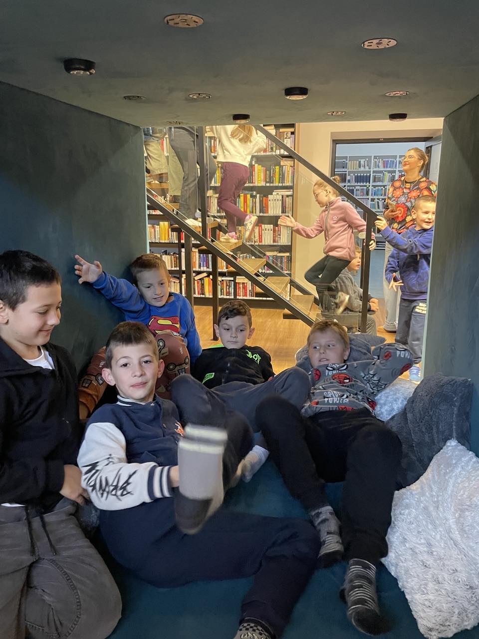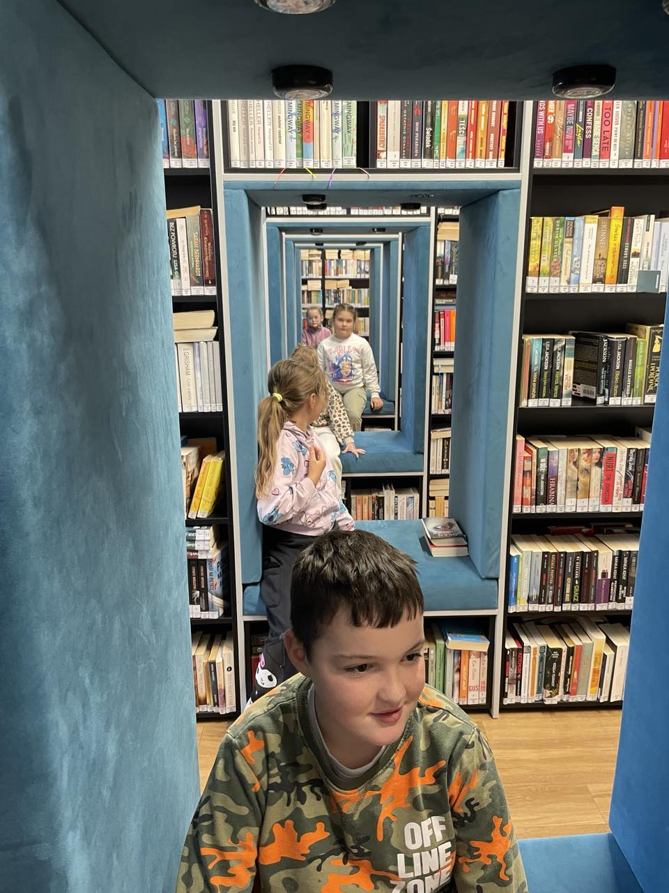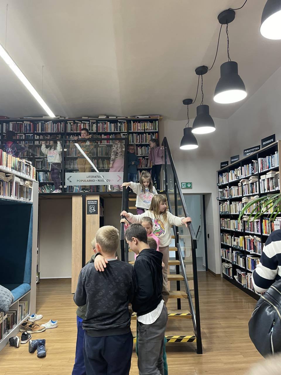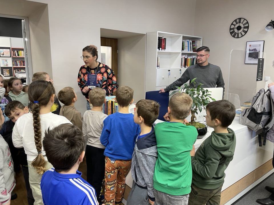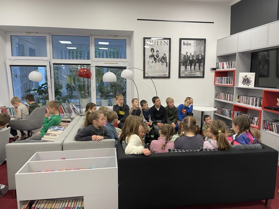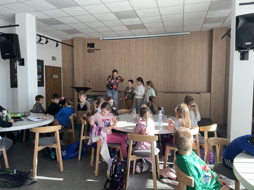 W dniu 23.10.2025 r. uczniowie klas I- III naszej szkoły udali się na wycieczkę do Biblioteki Miejskiej w Bieczu. Już od pierwszych chwil dzieci były zachwycone nowoczesnym i bardzo dobrze wyposażonym wnętrzem biblioteki. Poczuli magię tego miejsca, jego atmosferę i panujący tam niezwykły klimat. Uczniowie mieli okazję zobaczyć, jak wygląda codzienna praca bibliotekarza oraz poznać zasady korzystania z księgozbioru i katalogu. Podczas pobytu zwiedziliśmy podziemia biblioteki.