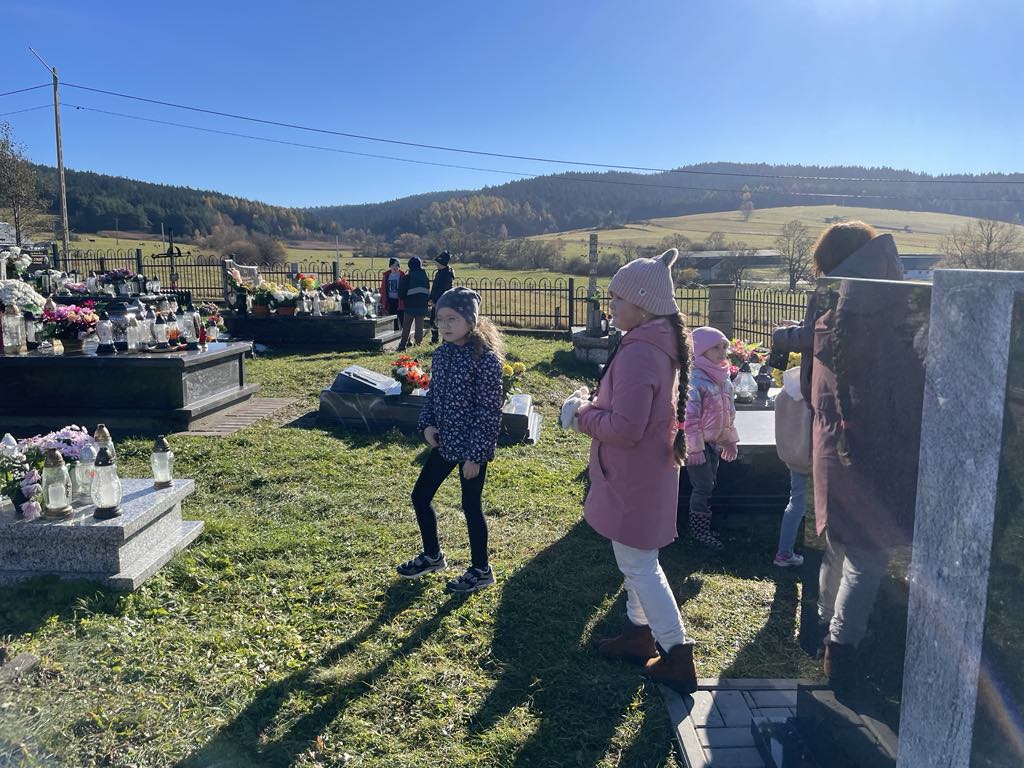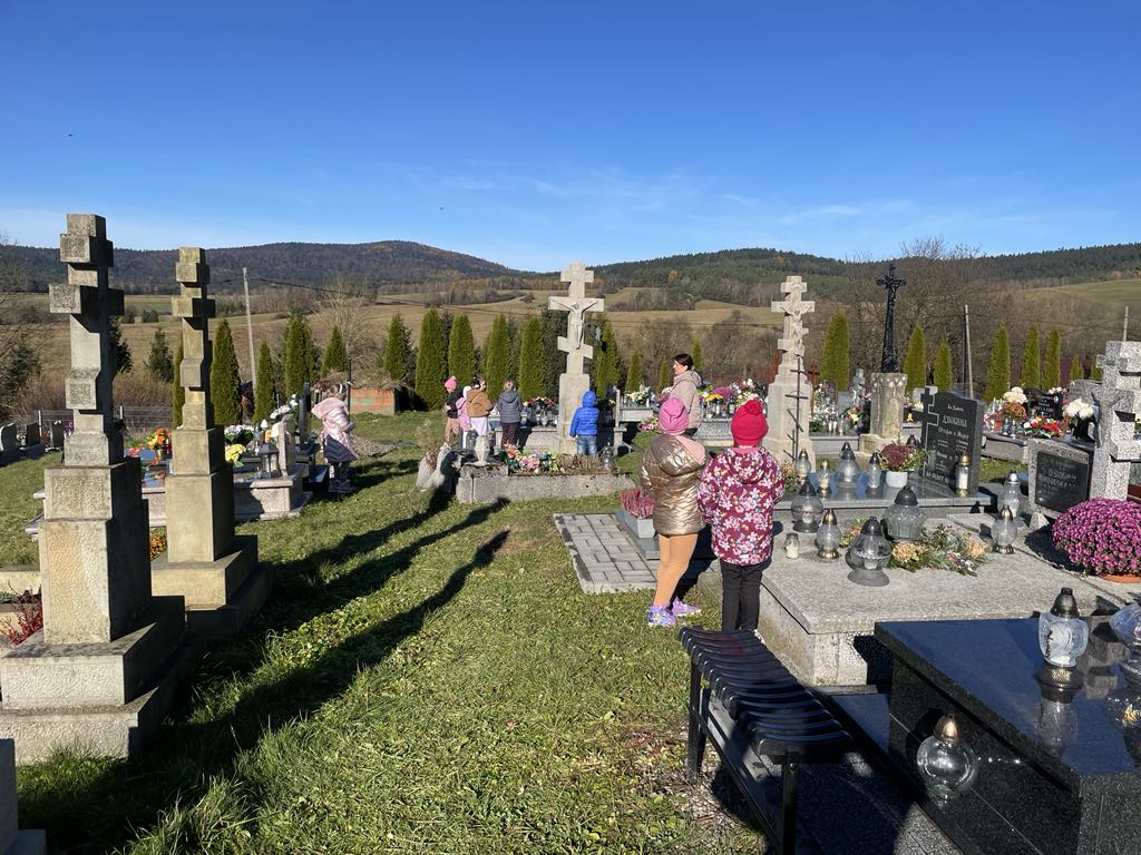 Pielęgnując pamięć o zmarłych dnia 5 listopada 2025r. uczniowie klas 1-3 wraz ze swoimi wychowawcami odwiedzili cmentarz choleryczny w Gładyszowie, gdzie odmówili modlitwę i zapalili znicze na grobach zmarłych. Dowiedzieli się, że cmentarz ten jest "Miejscem wiecznego spoczynku gładyszowian, którym życie odebrała epidemia cholery, tyfusa w latach 1846 - 1849, 1898, 1915"