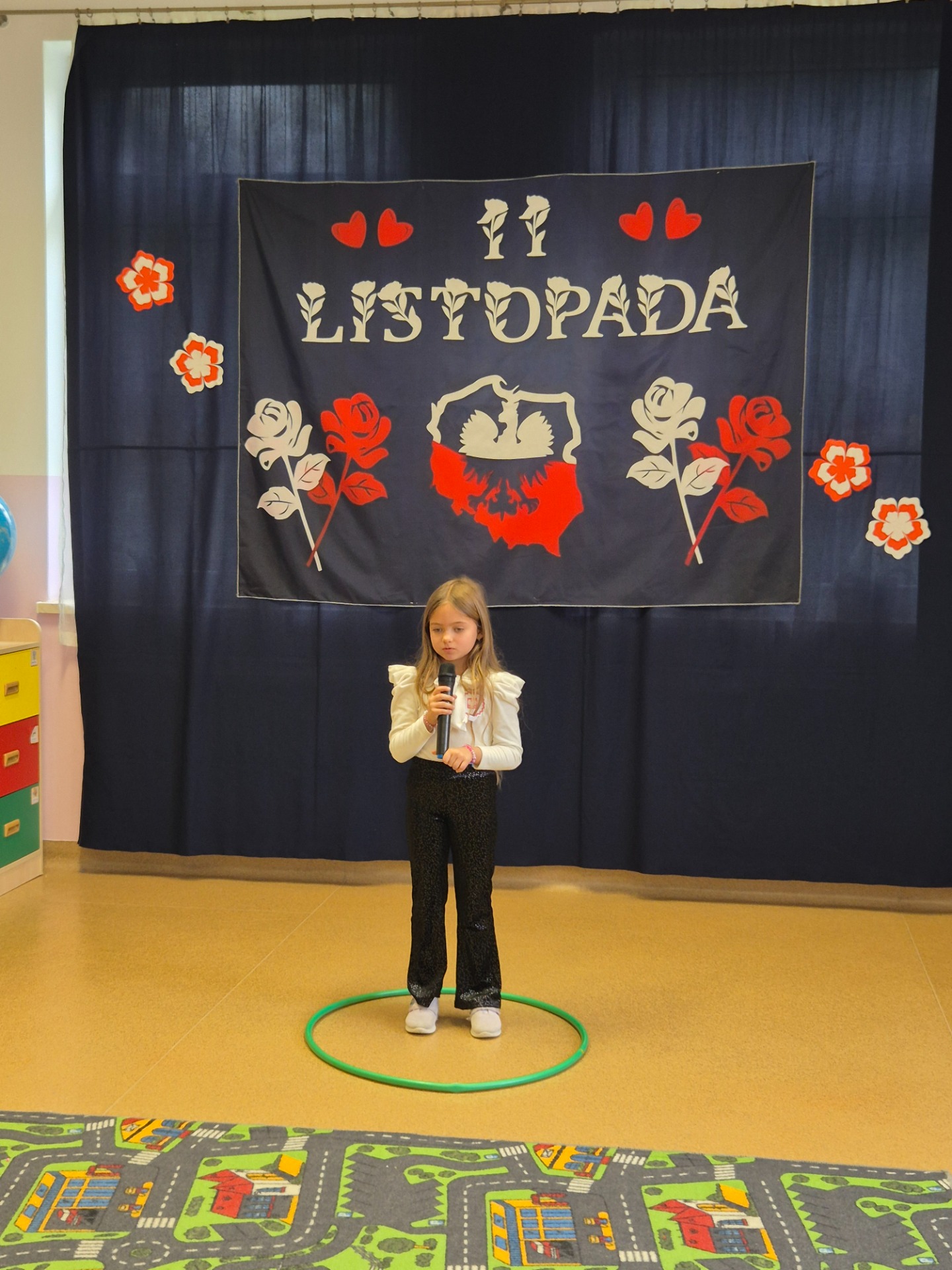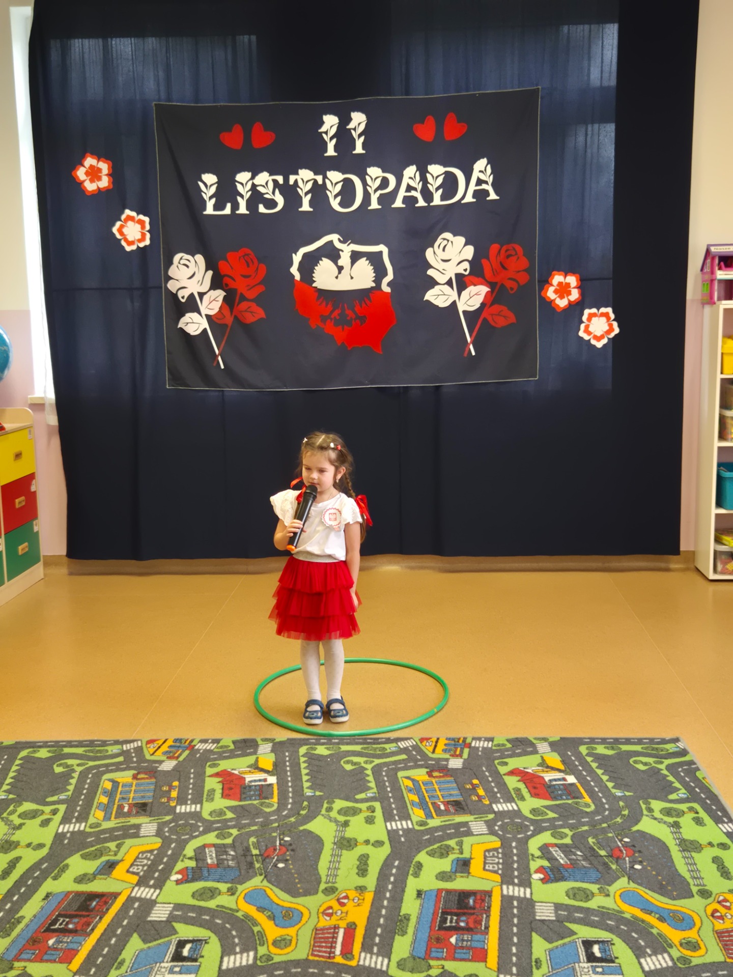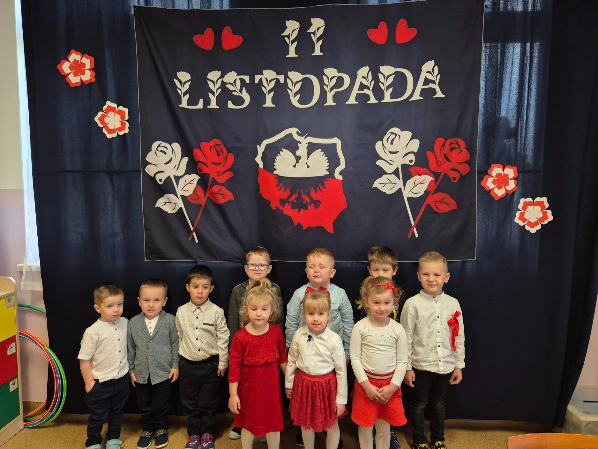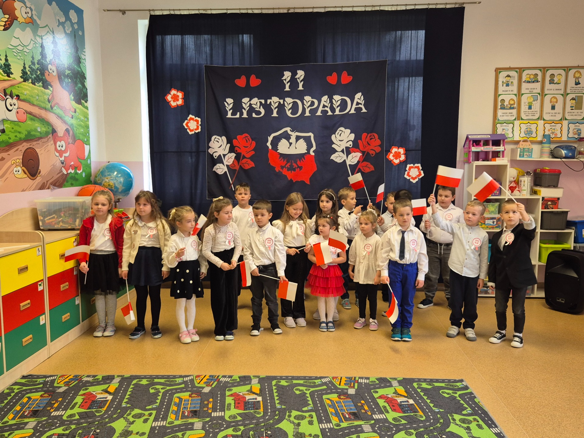 Dzień 11 Listopada to bardzo ważna data w historii naszej Ojczyzny. Dlatego 13 listopada 2025 odbył się w naszym przedszkolu konkurs wierszy patriotycznych. Na początku wydarzenia wszystkie dzieci wraz z wychowawcami oraz Panią Dyrektor odśpiewały hymn narodowy. Następnie obydwie grupy, jako pierwsza wystąpiła grupa 3,4 latków śpiewały piosenki oraz recytowały wiersze patriotyczne, które ćwiczyły pod okiem rodziców w domu. Wszyscy otrzymali gromkie brawa, dyplomy uczestnictwa oraz drobne upominki w postaci nagród książkowych.