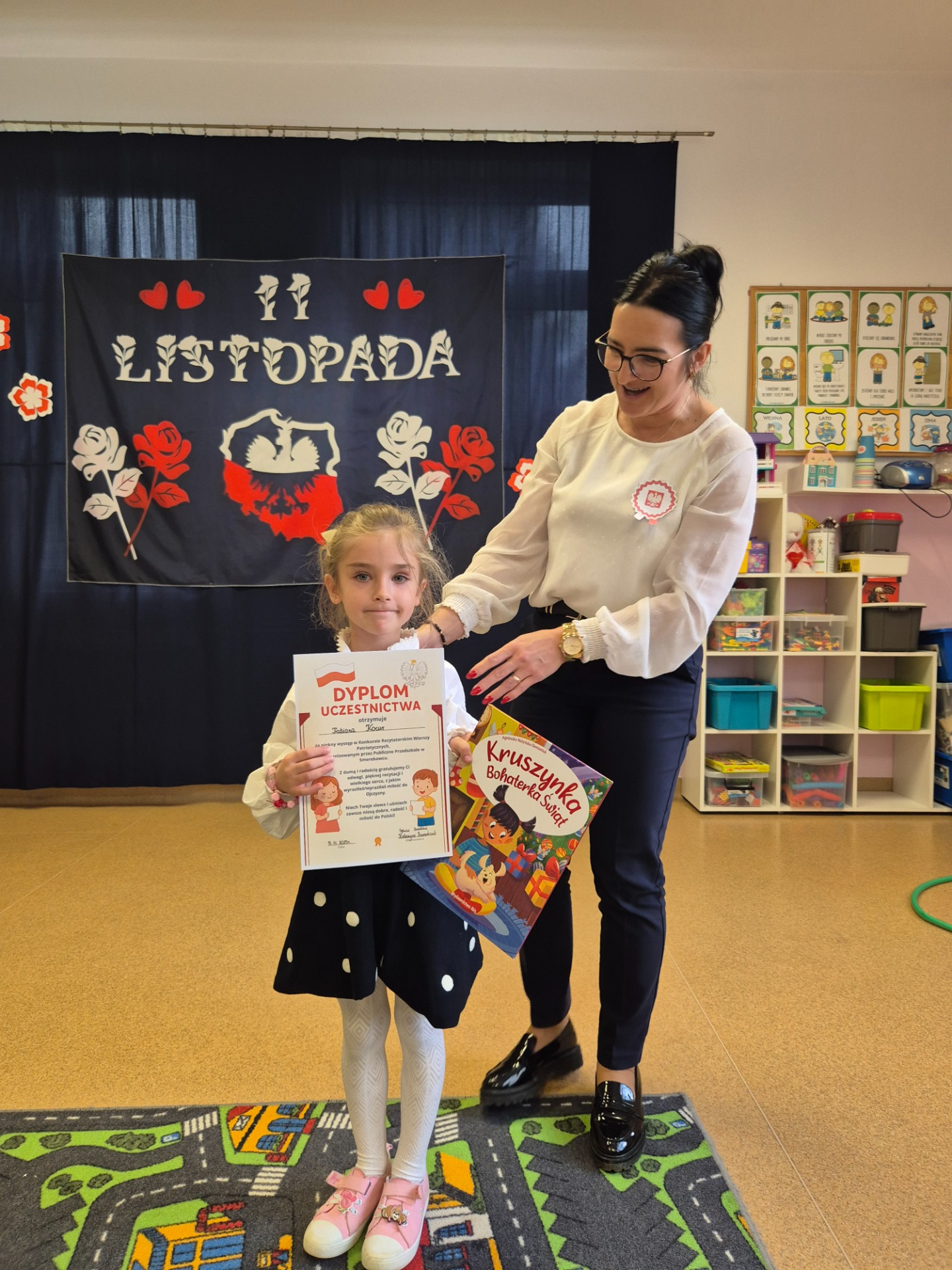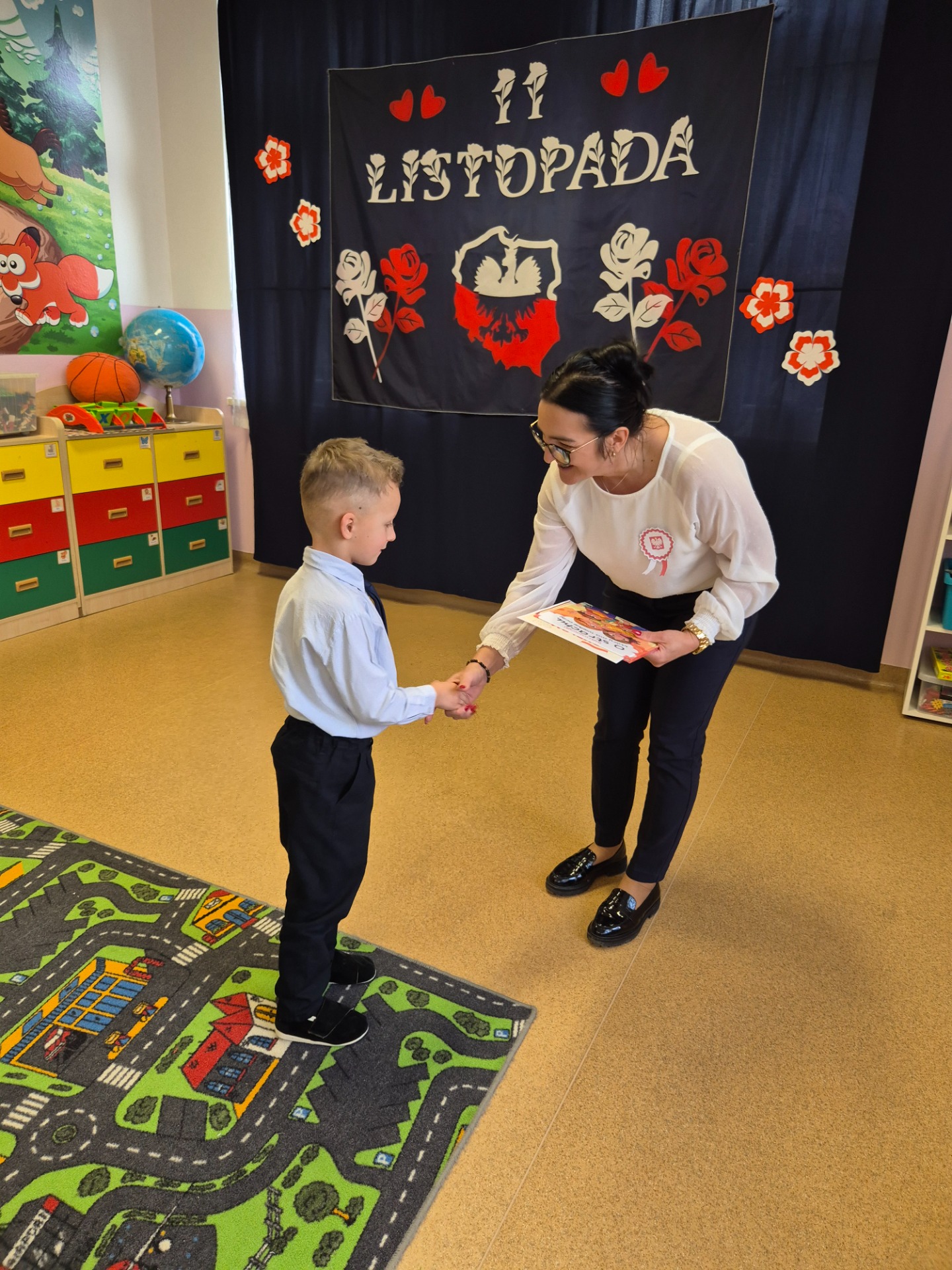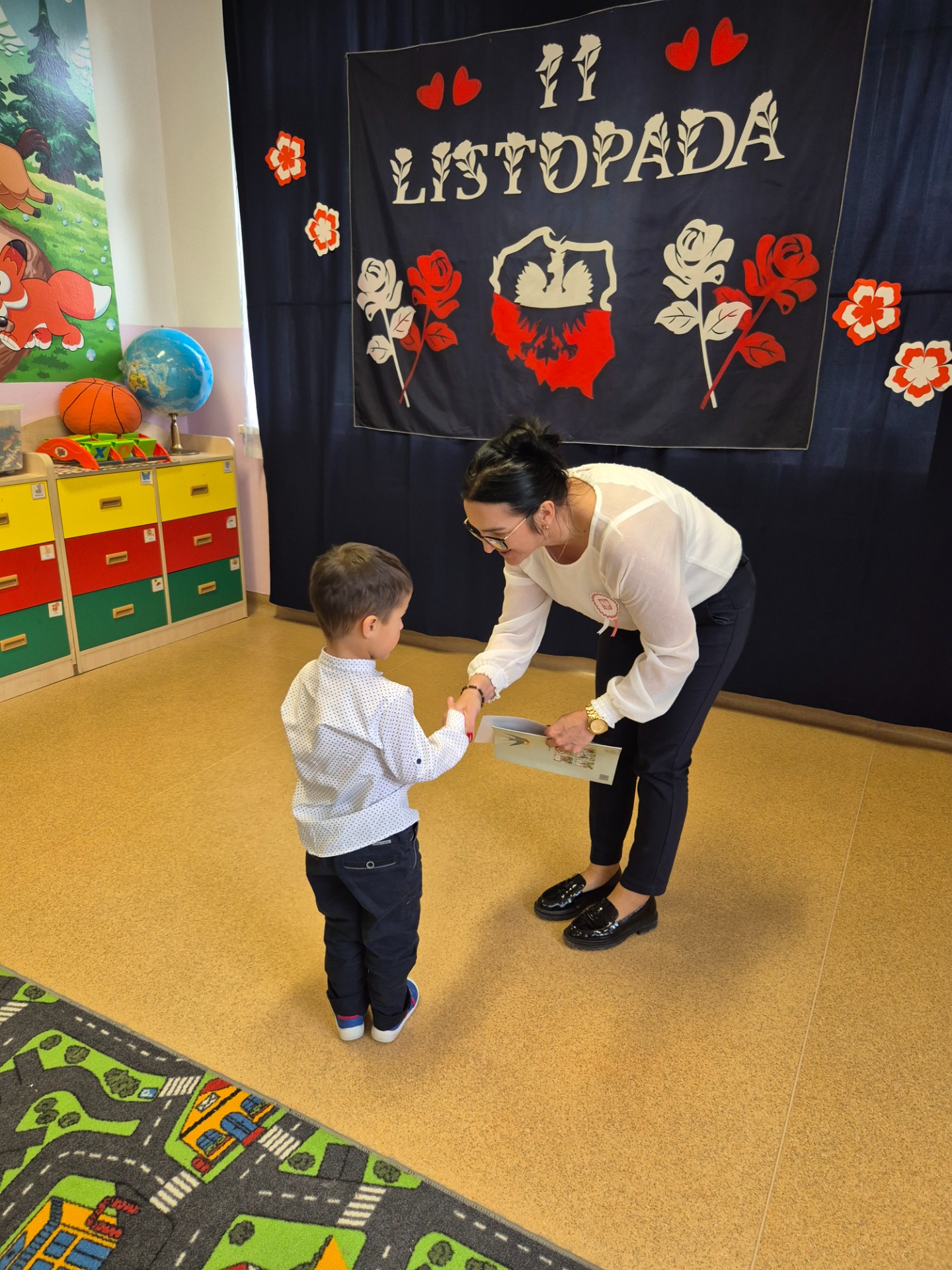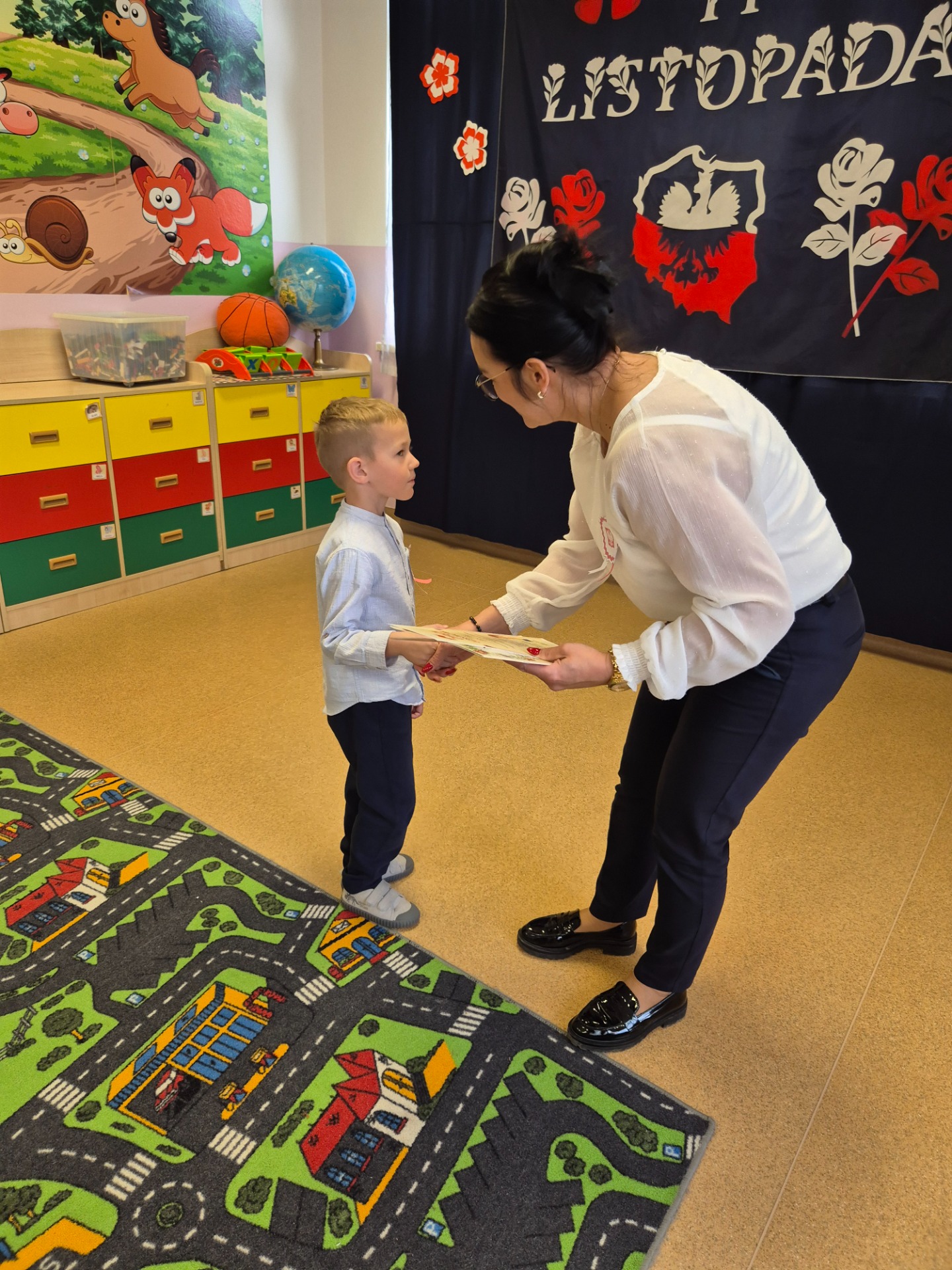 Dzień 11 Listopada to bardzo ważna data w historii naszej Ojczyzny. Dlatego 13 listopada 2025 odbył się w naszym przedszkolu konkurs wierszy patriotycznych. Na początku wydarzenia wszystkie dzieci wraz z wychowawcami oraz Panią Dyrektor odśpiewały hymn narodowy. Następnie obydwie grupy, jako pierwsza wystąpiła grupa 3,4 latków śpiewały piosenki oraz recytowały wiersze patriotyczne, które ćwiczyły pod okiem rodziców w domu. Wszyscy otrzymali gromkie brawa, dyplomy uczestnictwa oraz drobne upominki w postaci nagród książkowych.