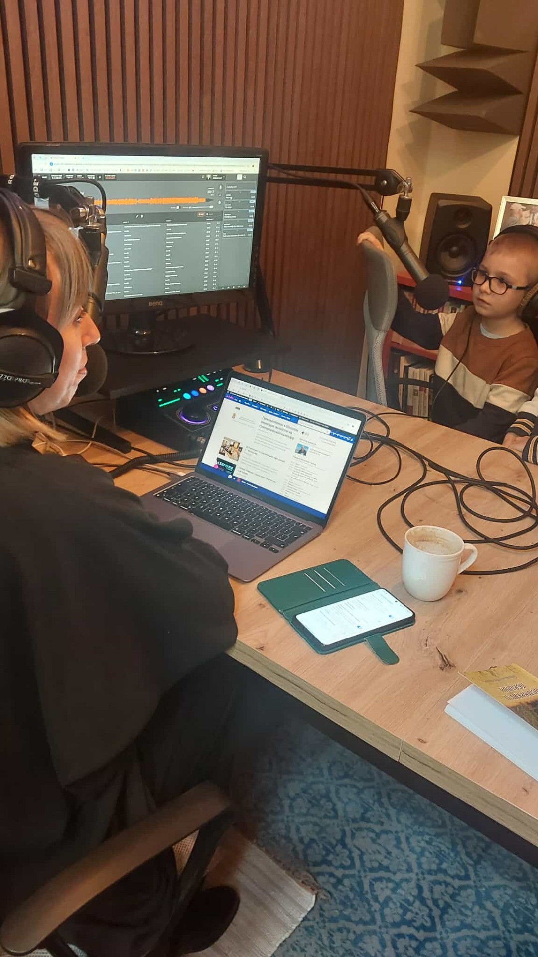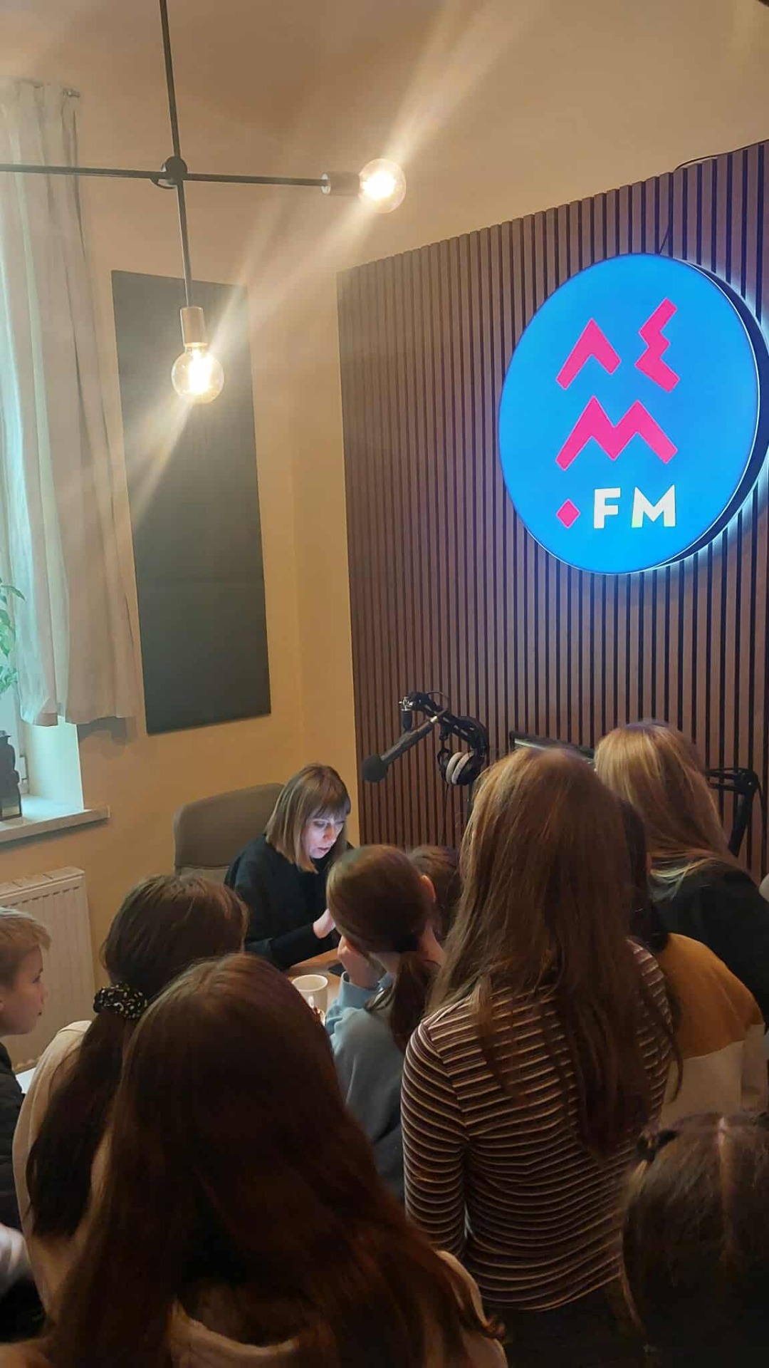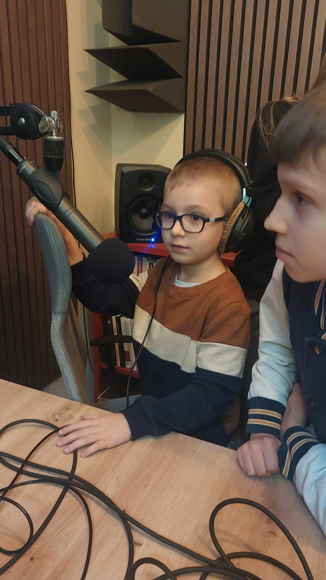 Następnie mieliśmy możliwość zwiedzenia studia radiowego, gdzie poznaliśmy tajniki pracy radiowca, proces powstawania audycji i obsługę sprzętu. Dla kilku uczniów była to szczególna okazja — z odwagą wystąpili na żywo na antenie, co dostarczyło wielu emocji i radości.