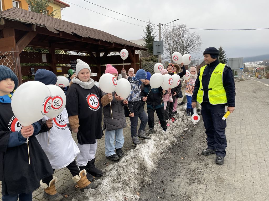 Uczniowie klas II i III naszej szkoły wzięli udział w ważnej społecznie akcji „NO PROMIL – NO PROBLEM”, której celem jest promowanie trzeźwości oraz bezpiecznych zachowań na drodze. Wraz z policjantem dzieci uczestniczyły w kontroli trzeźwości kierowców w Gładyszowie.