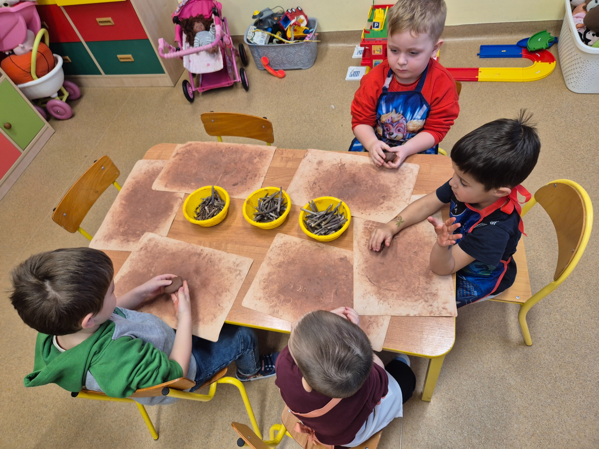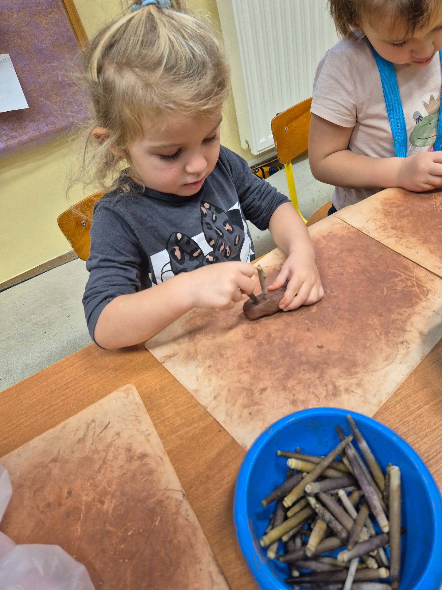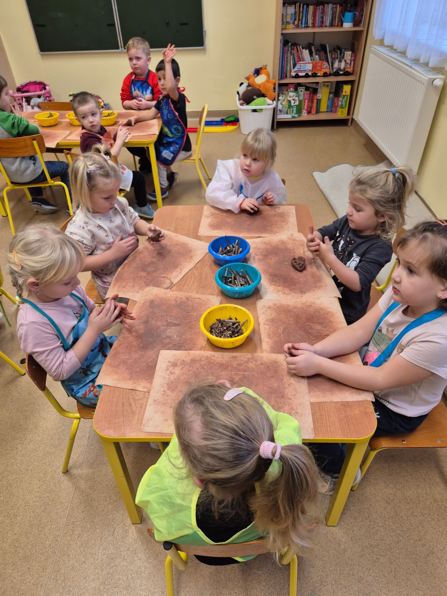 W ramach jesiennych zajęć dla dzieci 26 listopada 2025 roku zorganizowane zostały zajęcia „Jesień z gliną”. Pan prowadzący z Fundacji Polski Bursztyn przybliżył dzieciom w prosty i ciekawy sposób co można zrobić z gliny. Przedszkolaki w czasie zajęć tworzyły jeża z gliny z prawdziwymi kolcami jeżowca, podstawkę na drobne elementy, która była zdobiona techniką pozłotniczą. Na koniec dzieci wykonały jeszcze podstawkę pod świeczkę na jesienne wieczory. Zajęcia z gliną bardzo podobały się dzieciom. Po kilku dniach, kiedy wytwory z gliny całkowicie wyschły przedszkolaki zabrały je do domu.