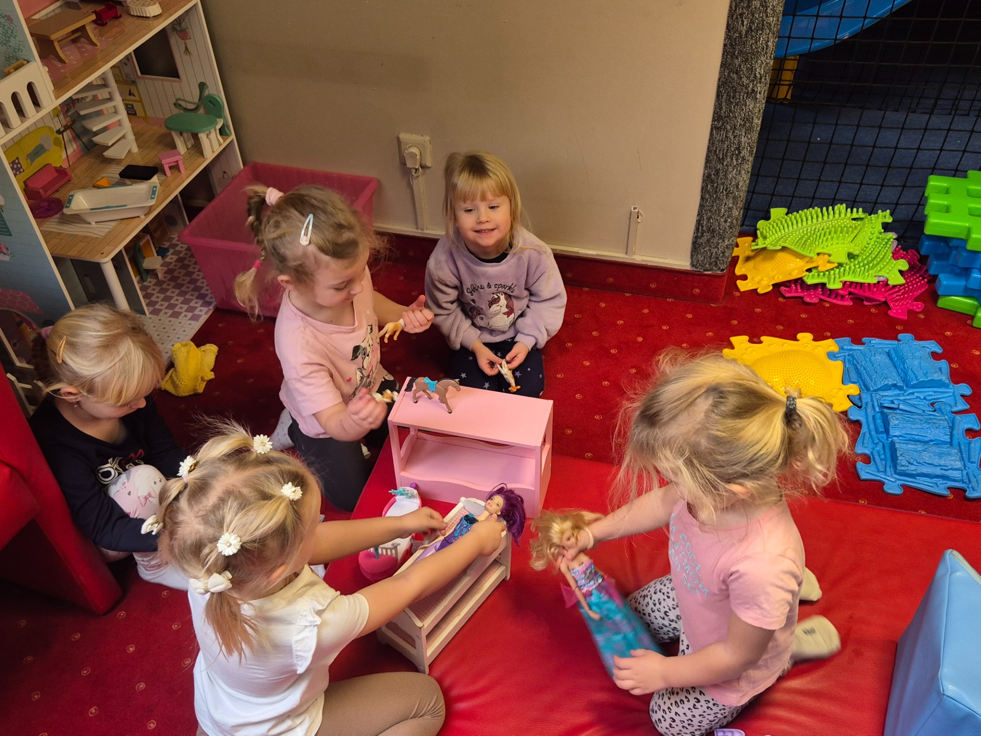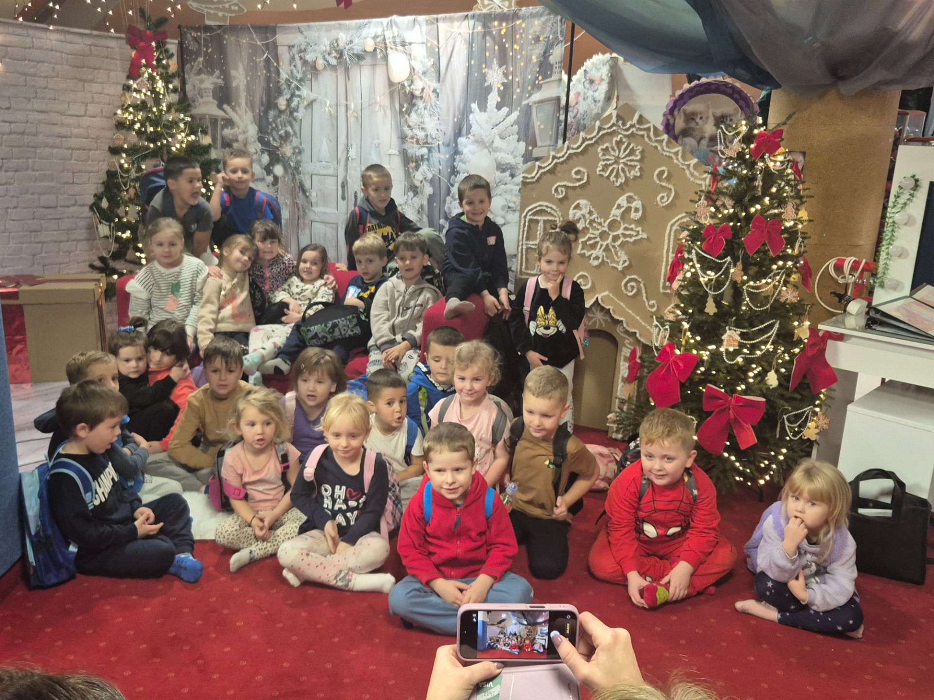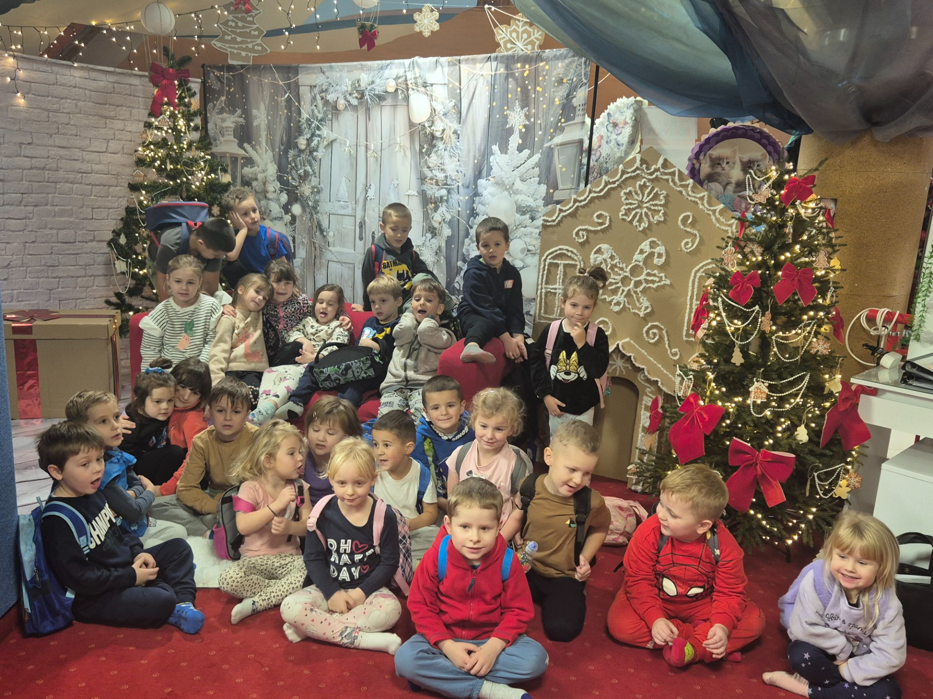Mikołaj tuż, tuż, dlatego w ramach przedświąecznej atmosfery 2 grudnia 2025 roku nasze przedszkole wybrało się na wycieczkę do sali zabaw „Mały Robinson” w Gorlicach. W sali zabaw oprócz świetnej zabawy, czekała na dzieci ścianka z motywem świątecznym, gdzie dzieci miały wykonane piękne zdjęcia. Następnie po wspaniałej zabawie udaliśmy się na bajkę pt.: „Kicia Kocia i jej przygody” do kina Kolory w Gorlicach. Przedszkolaki troszkę zmęczone, ale bardzo zadowolne, pełne wrażeń wróciły do przedszkola.